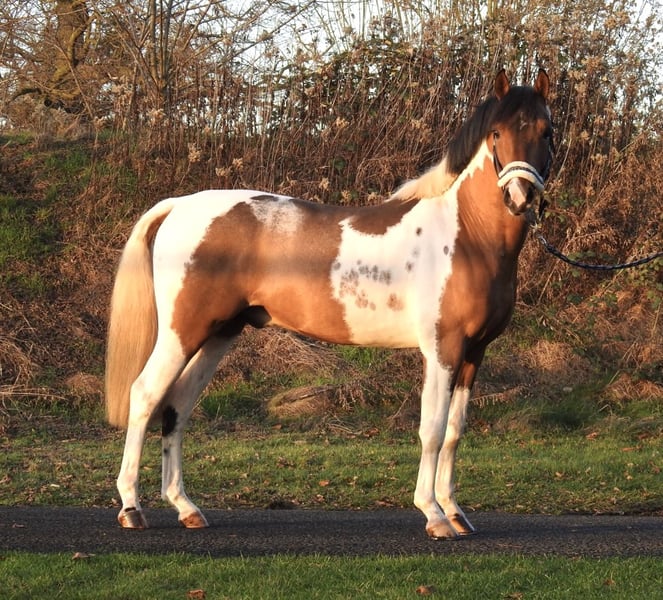 ❗️Vanwege de grote hoeveelheid werk vragen wij uitsluitend telefonisch contact.❗️ Te koop staat een 2,5-jarige Lewitzer met een huidige stokmaat van ongeveer 1,38 m. De pony is vorige week succesvol gepresenteerd bij de keuring en komt rechtstreeks van de fokker. Hij heeft een fantastisch lieve aard, is altijd door kinderen verzorgd en gereden, en heeft tot voor kort op de paddock gestaan met andere hengsten en ruiners. De pony is makkelijk in de omgang, laat zich braaf laden en is door de keuringstraining al gewend aan bit en longe. Zonder vooraf telefonisch contact sturen wij geen video's van onze paarden, dus verzoeken wij u om geen vragen te stellen zoals "Stuur alstublieft een video". Bezichtigingen zijn te allen tijde mogelijk. Voor verdere vragen kunt u ons telefonisch bereiken op 0171 530 33 40. Alle rechten van de foto's behoren toe aan Sport- und Freizeitpferde Wilfried Oestersandforth. Verspreiding of publicatie is strikt verboden.