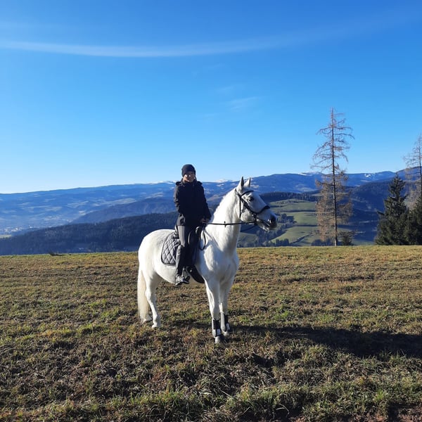 Zum Verkauf steht meine 9 - jährige Lipizzanerstute „Primavera“. Sie wurde 2016 im Lipizzanergestüt Piber (STMK) gezogen und wuchs dort in der Herde auf. (Laufstallhaltung, Sommer auf der Alm) - sämtliche Papiere sind vorhanden. Seit ihrem vierten Lebensjahr ist sie bei mir und wird in der Box gehalten, jedoch verbringen die Pferde (fast) den ganzen Tag auf der Weide. Daher wäre Offenstallhaltung für sie absolut wünschenswert, war aber leider baulich bei uns nicht möglich. Sie ist eingeritten, sowie ein - und zweispännig eingefahren. Unter dem Sattel und in der Kutsche ist sie sehr unerschrocken und fleißig. Egal ob in der Gruppe oder im alleine liebt sie es ins Gelände zu gehen. Sie bringt wahnsinnig tolle GGA mit und macht somit auch dressurmäßig viel her. Allgemein ist Primavera ein Verlasspferd. Sie hat ein sehr ruhiges Wesen und ist vor allem im Umgang mit Kindern ein richtiger Schatz. Andere Tiere (Hunde, Katzen, Kühe, etc.) bringen sie nicht aus der Ruhe und können ihr auch problemlos ganz nahe kommen. Hufschmied, Verladen, etc. sind ebenfalls kein Problem. Leider hat die jedoch ein leichtes Sommerekzem, dass durch Insektenstiche verursacht wird. Dieses wird allerdings durch eine Desensibilisierungkur behandelt und zeigt erste Erfolge. Im Sommer zur „Hochsaison“, klappt eindecken sehr gut. Genauere Infos werden natürlich bei Interesse bekanntgegeben. Das Ekzem ist allerdings nicht der Verkaufsgrund! Bei Interesse beantworte ich gerne sämtliche Fragen. Bitte um Kontaktaufnahme per WhatsApp.