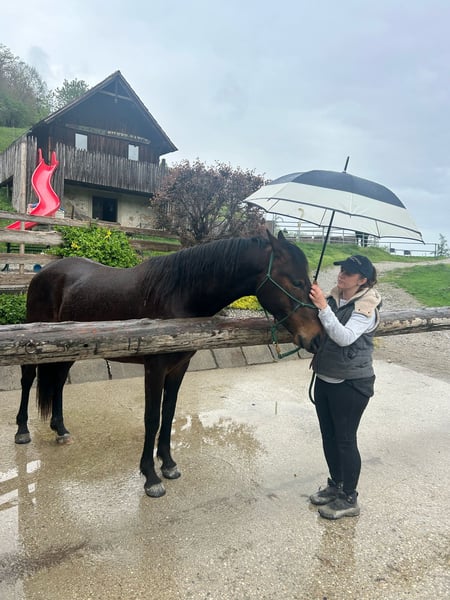 Batosta XXII est une jument de 2 ans. Elle est née en avril 2022. Elle est en bonne santé et facile à vivre avec les autres chevaux. Elle est gentille et aime être entourée de gens. Elle connaît l'ABC pour un jeune cheval. Elle vit actuellement dans une écurie ouverte au sein d'un grand troupeau, mais elle connaît également le box. Elle devrait mesurer 165 cm. Elle a un grand potentiel pour le dressage et aussi comme jument d'élevage. Nous pouvons organiser le transport partout dans l'UE. Pour plus d'informations, appelez ou envoyez un message (via WhatsApp) au +386 31 554 107 (Miha). Nous parlons anglais, allemand, slovène et croate.