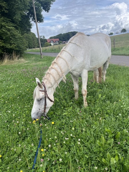 Hallo, Ich verkaufe meinen 13 Jährigen Wallach Sammy. Da wir leider in den letzten Jahren nicht richtig zueinander gefunden haben, habe ich mich nach langer Überlegung dazu entschlossen ihn zu Verkaufen. Er wurde bei mir hauptsächlich im Gelände geritten und auch ab und an in der Halle oder auf dem Platz. An Bodenarbeit und Freispringen hat er auch sehr viel Spaß. Ich habe mit ihm auch an Gelassenheitstraining teilgenommen bei dem er auch mit viel Motivation dabei war. Er braucht eine Erfahrene und ruhige Hand bei der er Sicherheit und Vertrauen bekommt. Daher ausschließlich an Erfahrene Reiter zu Verkaufen. Für Mehr Infos über Ihn gerne eine Nachricht schreiben. Er ist Kern Gesund und hatte bei mir noch keine Beschwerden. Er hat vorne Hufeisen. Im Sommer trägt er bei mir dauerhaft eine Fliegendecke. Bei mir lebt er im Offenstall. Er kommt super mit anderen Pferden klar und ist eher Rang hoch. Er fährt Hänger ohne Probleme und auch beim Hufschmied hatten wir nie Probleme. ( Ich habe ihn mit Westernsattel im Gelände und mit Dressursattel in der Halle geritten) Für weitere Infos schreibt mir gerne eine Nachricht. Der Preis ist VB. Ich bin für Angebote offen. Liebe Grüße Frida
