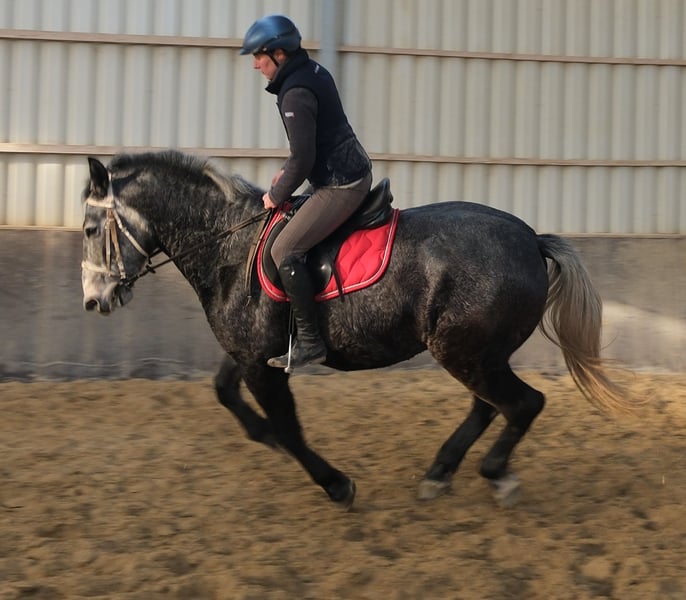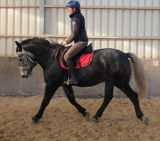 Barocker,im Hengsttyp stehender schicker Rappschimmelwallach. Pajkos ist sehr gut in allen Gangarten geritten,brav und unkompliziert im Umgang. Bei weiterer Förderung auch für sportliche Zwecke geeignet. Ein Pferd für den gehobenen Freizeitbereich,nichts für Amateurreiter! 5 Jahre, 160cm Bei Interesse bitte anrufen, keine Mail! Für eventuell auftretende Fehler in der Beschreibung gilt keine Gewähr! Tel.: 0173-3843407 Da es sich um ein lebendes Tier handelt, sind dies subjektive Eindrücke des Anbieters und keine zugesicherten Eigenschaften des Tieres! Ständig schöne Fahr-u.Freizeitpferdesowie neue Kutschen verschiedener Modelle preiswert im Angebot. Anschrift Stall: 99628 Buttstädt, Oberwendenstraße 39