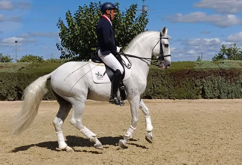 **Sale ad: Elegant Lusitano stallion for sale** We are offering a beautiful Lusitano stallion for sale, who impresses with his elegance and impressive appearance. - Breed:** Lusitano - **Sex:** Stallion - Year of birth:** 2013 - **Color:** grey - Height:** 165 cm - **Training level:** Dressage This charming stallion not only impresses with his noble appearance, but also with his talent and passion for dressage. He is always motivated and willing to learn, which makes him an ideal partner for ambitious riders. The impressive gray is very easy to ride and can also be ridden by children or used as a lesson horse. He recently took part in the Andalusian Grand Prix. If you are looking for a horse that is a pleasure to ride in the arena as well as to handle, then this Lusitano is just right for you. If you are interested, we look forward to hearing from you and will be happy to provide further information and arrange a viewing.