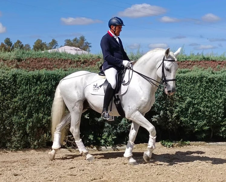 **Verkaufsanzeige: Eleganter Lusitano Hengst zu verkaufen** Wir bieten einen wunderschönen Lusitano Hengst zum Verkauf an, der durch seine Eleganz und sein beeindruckendes Auftreten besticht. - **Rasse:** Lusitano - **Geschlecht:** Hengst - **Geburtsjahr:** 2013 - **Farbe:** Schimmel - **Stockmaß:** 165 cm - **Ausbildungsstand:** Dressur Dieser charmante Hengst überzeugt nicht nur mit seinem edlen Erscheinungsbild, sondern auch mit seinem Talent und seiner Leidenschaft für die Dressur. Er zeigt sich stets motiviert und lernwillig, was ihn zu einem idealen Partner für ambitionierte Reiter macht. Der beeindruckende Schimmel ist sehr leichtrittig und kann auch von Kindern geritten werden oder als Lehrpferd dienen. Er hat aktuell beim Großen Preis von Andalusien teilgenommen. Wenn Sie auf der Suche nach einem Pferd sind, das sowohl im Viereck als auch im Umgang Freude bereitet, dann ist dieser Lusitano genau das Richtige für Sie. Bei Interesse freuen wir uns auf Ihre Nachricht und stehen für weitere Informationen und Besichtigungstermine gerne zur Verfügung.