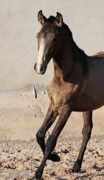 Expressive weanling with top pedigree Features: - Breed: Lusitano - Gender: Stallion - Year of Birth: 2025 - Color: Buckskin - Height: Estimated final height 164 cm Expressive weanling with top pedigree – directly from the breeder! This Lusitano stallion, born in April 2025, impresses with his rare dark buckskin color and his sweet, people-oriented character. He is already very trusting and clear-headed. His father is a multiple award-winning stallion – World and European Champion in Working Equitation – known for his exceptional rideability, strong nerves, and honest nature. He consistently passes these qualities on to his offspring. Although many of his lines are successful in bullfighting, his descendants stand out for their balanced character and uncomplicated nature in daily handling. The future height is expected to be around 1.64 m – ideal for riders looking for a sporty, sensitive horse with excellent potential. Currently, VARZIM is growing up in a beautiful campo, where he can grow peacefully and is provided with the best feed. In the herd, he shows himself to be very sociable with other horses. I can gladly provide more pictures and videos if interested.