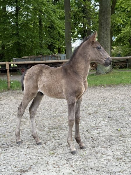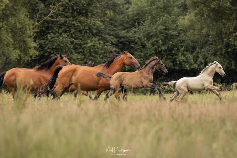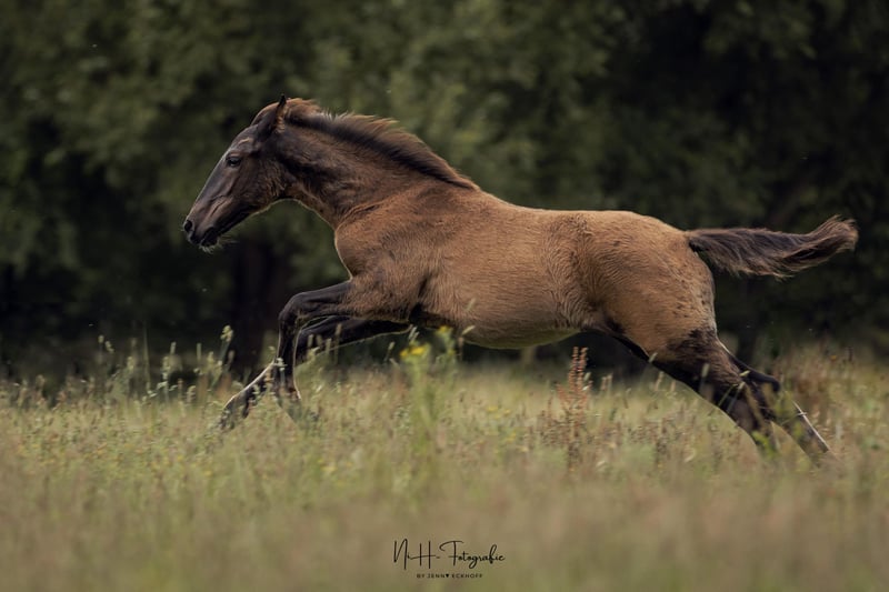 Il nostro Viu Uno UET è davvero unico. È molto socievole e dotato di ottimi movimenti, proviene dalla nostra pluripremiata Cereja CSM (Spartacus CSM) e dal giovane stallone Ouro JCL (Riopele). Viu Uno cresce nel nostro piccolo branco di Stuth e sta imparando da noi l'ABC dei puledri. È nato in Germania ed è quindi privo di piro. Viu Uno mostra movimenti eccezionali e, quando si libera del pelo da puledro, ha un fantastico colore baio.