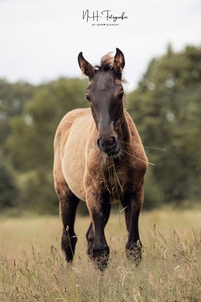 Nuestro Viu Uno UET es realmente único. Muy sociable y con grandes movimientos, proviene de nuestra premiada Cereja CSM (Spartacus CSM) y del joven semental Ouro JCL (Riopele). Viu Uno crece en nuestro pequeño rebaño de Stuth y está aprendiendo con nosotros el ABC de los potros. Nació en Alemania y, por lo tanto, está libre de piro. Viu Uno muestra unos movimientos excelentes y, cuando se deshace del pelaje de potro, tiene un hermoso color negro.