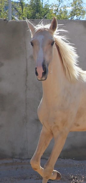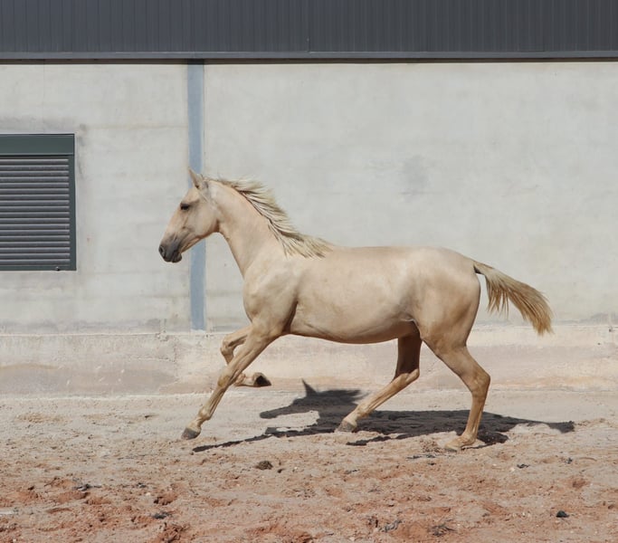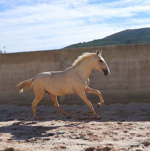 Caballo semental admirable con excelentes aires básicos - Raza: Lusitano - Sexo: Semental - Año de nacimiento: 2022 - Color: Palomino Dun, lo cual es muy raro - Altura: 166 cm, medida final estimada Ofrecemos a la venta un excepcional semental Lusitano nacido en 2022. Este magnífico Palomino no solo destaca por su impresionante apariencia en el color especial Palomino Dun, sino también por su potencial para la Working Equitation. Este joven semental ya muestra prometedoras cualidades para la Working Equitation. El talento para la Working Equitation le fue legado por su padre ADAGIO, quien tuvo éxito en campeonatos europeos y mundiales. Su carácter gentil y su disposición para aprender lo convierten en un compañero ideal para jinetes ambiciosos. Con su noble ascendencia y su cuerpo armónico, es un verdadero atractivo y también posee todas las condiciones para tener éxito en la cría. Puedo enviar más fotos y videos con gusto si hay interés.