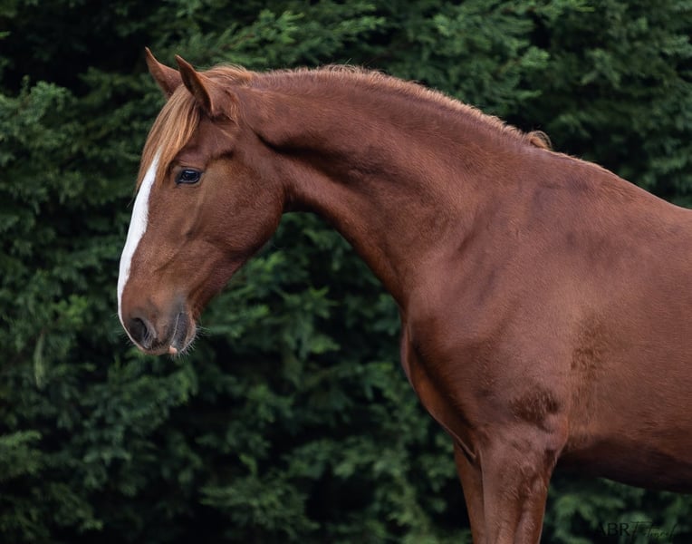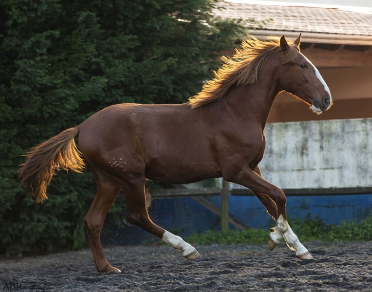 Painted by Picasso 🌺 This colourful piro free chestnut Lusitano colt born in 2024 is a real stunner. He moves super expressive, is very strong and big. Final expected size will be 165cm and a baroque type. Interesting bloodlines with Palha/Veiga paternal and mother father is Miura de Cais. He will be absolutely amazing and a serious prospect for dressage and working equitation. He behaves very well and knows the foal ABC. Halter, hoofs, showering, brushing etc. Located in Portugal 🇵🇹 More informations only over whatsapp 00491786997334. Jasmin from Top-Lusitanos 🤗