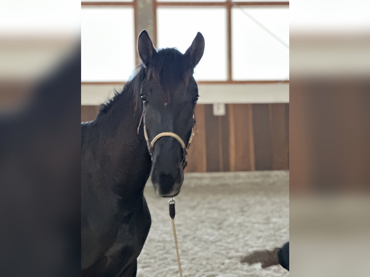 Urim, auch liebevoll Urmel genannt, unser tiefschwarzer Lusitano Rapp Hengst sucht seinen Menschen. Im April 2024 ist er geboren und misst derzeit schon 154 cm. Das geschätzte Endmass beträgt 165 cm. Zur Zeit sieht er ein bisschen so aus, als wenn er noch nicht in den Anzug passt…aber das wird kommen und er wird ein wunderschöner großer Rappe. Aufgrund von Bestandsverkleinerung suchen wir für Urim seinen Herzensmenschen. Er möchte die Welt pferdegerecht und liebevoll kennenlernen. Im Umgang ist Urim dem Menschen sehr zugewandt und liebt es geputzt zu werden. Derzeit lebt er mit seinem Bruder und 2 Wallachen im Herdenverband. Gibt artig beim Schmied alle 4 Hufe und lernt schnell. Aufgrund des Alters empfehlen keine reine Boxenhaltung und Kontakt zu gleichaltrigen oder eine gut sozialisierte Herde. Der Charakter lusitanischer Pferde ist einzigartig. Sie sind unglaublich schlau und wollen gerne gefallen. Sie lieben die Zusammenarbeit mit ihrem Menschen wenn sie eine Sprache sprechen. Er ist bei der APSL registriert und hat ein blaues Buch.
