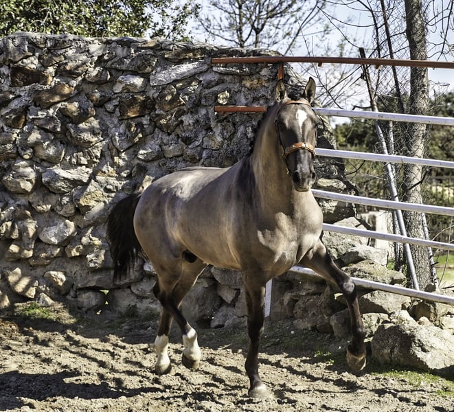 Exceptional Grullo Lusitano Stallion – 3 Years Old | 1.61 m A rare opportunity to acquire a truly unique Lusitano stallion with outstanding genetic value and exceptional character. This 3-year-old grullo stallion combines beauty, functionality, and proven bloodlines. Coming from the prestigious Alter Real lineage, he represents one of the most sought-after and historically influential lines in the Lusitano breed. He stands at 1.61 m with a harmonious conformation, strong topline, and correct limbs. His temperament is outstanding—easy, intelligent, and naturally cooperative—making him an ideal partner for both amateur and professional riders. Genetically, he is highly special, with a color and pedigree combination that is extremely rare in the market. Highlights: • ✔️ Grullo coat – rare and highly desirable • ✔️ 3 years old – perfect age to develop your own horse • ✔️ Height: 1.61 m • ✔️ Alter Real bloodline • ✔️ Excellent character and rideability • ✔️ Clean X-rays • ✔️ Piroplasmosis negative • ✔️ Strong potential for high-level Dressage and Working Equitation A magnificent stallion with the quality, mind, and movement to reach the top levels.