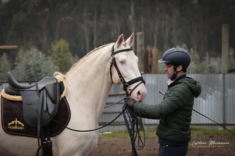 Joven semental prometedor con una línea de sangre de primera calidad y potencial para el futuro Raza: Lusitano Sexo: semental Año de nacimiento: 2022 Color: Cremello Altura en mano: aproximadamente 1,58 m (padre 1,70 m | madre 1,62 m – se espera un mayor crecimiento) ⸻ Se ofrece a la venta un semental joven excepcionalmente talentoso, que destaca no solo por su linaje de alto nivel, sino también por su doma, calidad en los movimientos básicos y su potencial de desarrollo. ⸻ 🏇 Formación y movimiento ✔️ Montado de forma adecuada para su edad en las tres fases básicas ✔️ Especialmente buen trote, con mucha fuerza ✔️ Cómodo de montar, con ritmo claro ✔️ Demuestra doma, equilibrio y disposición para aprender ✔️ Candidato ideal para una formación avanzada ⸻ 🧬 Linaje destacado ✨ Padre: IMPERADOR DAS ARCAS • Conformado con más de 72 puntos • Probado reproductor de calidad, expresión y disposición para el rendimiento ✨ Madre: ALTIVA • Valorada con 79,5 puntos (¡casi 80!) • Representa excelencia en conformación, carácter y calidad de movimiento ➡️ Dos líneas de sangre que prometen calidad, deportividad y un futuro brillante. ⸻ 💎 Carácter y perspectivas SOUFLE D ARCOS se presenta como un semental joven atento, honesto y cooperativo. Es: • 🧠 Motivado para aprender • 🤍 Amigable en el trato • 🔥 Motivado, sin estar sobreexcitado ➡️ Un caballo ideal para jinetes que desean una base sólida y buscan un potro con sustancia para la cría y el deporte. ⸻ 🎯 Conclusión Un semental joven muy interesante con: ✅ Linaje de primera ✅ Formación básica sólida ✅ Trote muy bueno ✅ Perspectiva clara para deporte y cría ⸻ 📞 Contacto y visita SOUFLE D ARCOS puede ser visitado y probado a partir de acuerdo. Estoy a la espera de consultas serias y con gusto dedicaré tiempo a una conversación personal.