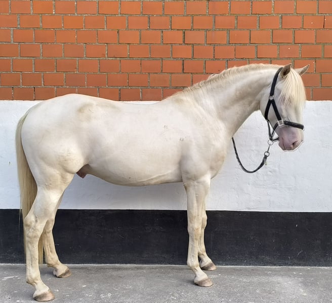 This stunning 3.5-year-old Lusitano stallion, fully registered with APSL and of excellent pedigree, is seeking a wonderful new home! Sire: 1.76 m, thoroughly licensed with distinction, Dam: 1.63 m, also from top-quality breeding. Estimated final height approximately 1.63 m (16.1 hh), with the strong build of a classic Lusitano. Temperament: Very people-oriented and affectionate, friendly and curious – social in a mixed herd, low in the ranks, and easy to handle. He is not a difficult young horse; as gentle as a gelding, and already forgiving if the handler makes a mistake. His temperament is perfectly balanced; he can be actively engaged but remains approachable. If no work is required, he is content to amble along peacefully. He is not a Lusitano that necessarily needs work to stay balanced, as he can become dull otherwise. Training: Age-appropriate and gentle – familiar with lunging, groundwork, and has already been lightly backed, showing excellent cooperation. Of course, he is not yet trained daily or ridden regularly at this age! Very well-behaved for the farrier, loading, grooming, and daily handling. Housing: He comes from our climate, was born in the Netherlands, and raised here in Germany. Properly bred, with peers and older horses, in an open stable with paddock trail and 24/7 turnout, always with free access to roughage. Well-socialized, properly fed, and mineralized. Health: He has already undergone a thorough clinical pre-purchase exam and has good radiographs of his legs from summer. He can remain a stallion or be castrated at the clinic upon request. Further training and learning at my place are possible. Important: I value his best possible home more than the price. I am not a horse dealer and am selling him privately, as I simply cannot give enough time to four young horses. Please feel free to contact me anytime with questions.