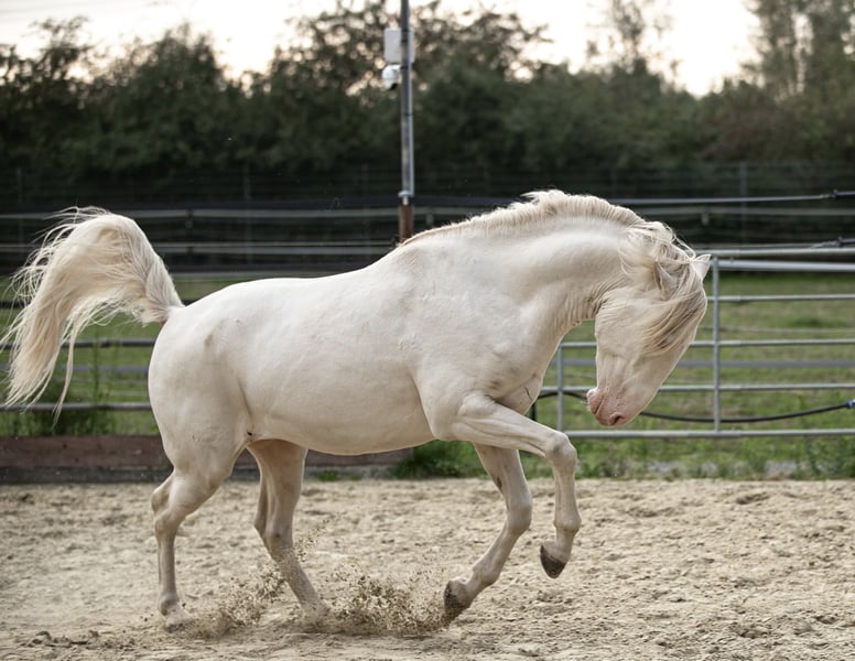 Questo splendido stallone lusitano di 3 anni e mezzo, con documenti APSL completi e un’ottima genealogia, cerca una famiglia speciale! Padre: altezza di 1,76 m, stallone con ottima omologazione e riconoscimento, Madre: altezza di 1,63 m, anch’essa di eccellata genealogia. Stima di altezza finale circa 1,63 m, con la corporatura robusta di un classico Lusitano. Carattere: molto socievole e affettuoso, amichevole e curioso – inserito in un branco misto, di rango basso e molto semplice da gestire. Non è un puledro difficile, dolce come un castrone e già tollera bene gli errori del cavaliere. Il suo temperamento è equilibrato: si può stimolare attivamente, ma rimane sempre disponibile e, se non si richiede nulla, può anche oziare tranquillamente. Non è un Lusitano che necessita di lavoro continuo, perché potrebbe diventare scontroso. Addestramento: adeguato alla sua età, eseguito con delicatezza – conosce la longe, il lavoro a mano ed è stato già montato con molta cura, risultando molto facile da gestire. Naturalmente, a questa età, non viene allenato quotidianamente e non viene montato regolarmente! Ottimo comportamento con il ferratore, durante il carico, la pulizia e nelle routine quotidiane. Allevamento: proviene dal nostro clima, nato nei Paesi Bassi e cresciuto in Germania. Allevato in modo naturale, con coetanei e cavalli più anziani, in paddock all’aperto con trail e 24 ore di pascolo, sempre con fieno a volontà. Ben socializzato, alimentato e integrato con minerali. Salute: ha già sostenuto una buona visita clinica di acquisto e radiografie delle zampe, eseguite durante l’estate. Può rimanere stallone o, su richiesta, essere castrato in clinica. Possibilità di rimanere con me per continuare l’apprendimento. Importante: per me, il suo miglior futuro vale più del prezzo. Non sono commerciante di cavalli, lo vendo privatamente perché non posso dedicargli abbastanza tempo con quattro giovani cavalli. Per qualsiasi domanda, sono sempre disponibile.