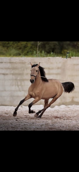 Brilliant dun stallion with excellent basic gaits - Breed: Lusitano - Sex: Stallion - Year of birth: 2022 - Color: dun (genetic test available!) - Height: 166 cm, final height estimated, currently 161 cm We are offering an exceptional Lusitano stallion for sale, who will delight every lover of this noble breed with his impressive characteristics. This young stallion not only impresses with his elegant appearance, but also with his promising potential for dressage and working equitation. His talent for working equitation was passed on to him by his sire ADAGIO, who was successful at European and World Championships. With his noble pedigree and harmonious conformation, he is a real eye-catcher and also has all the prerequisites to be successful in breeding. If you are looking for a Lusitano that impresses with both his beauty and his qualities, then this stallion is the perfect choice. He can now be trained directly by his new owner this year. A real diamond in the rough. I can send you more pictures and videos if you are interested.