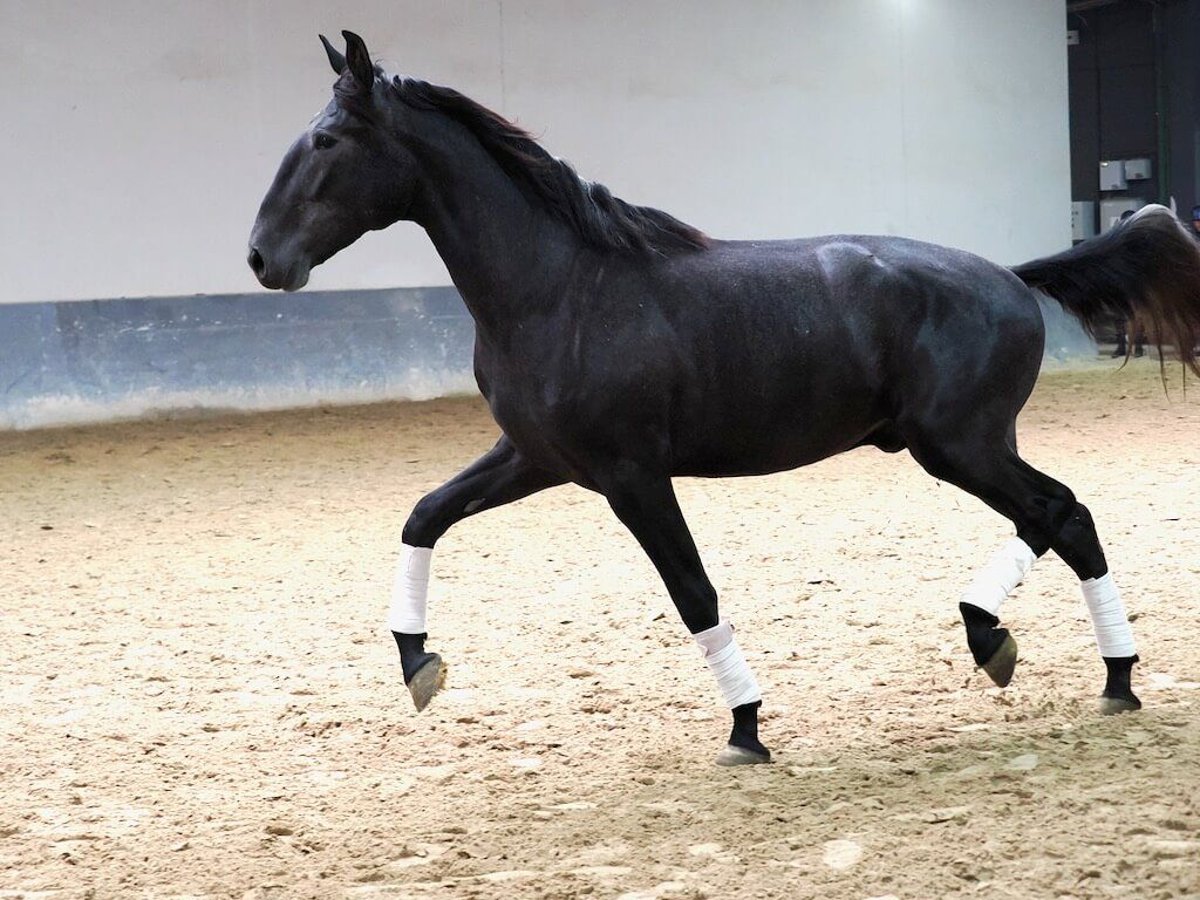 Introducing a spectacular dark grey Lusitano colt, born in 2022, with an impressive height of 1.69 m and outstanding morphology. His presence is captivating, with a balanced and harmonious structure that stands out both in dressage and morphological competitions. This young stallion has expressive, elastic, and expansive movements, with exceptional quality in his gaits, making him a promising candidate for high-level competition. His impeccable genetics ensure not only beauty and functionality but also a noble temperament and a strong willingness to work. Perfect for riders and breeders looking for a horse with great sporting and morphological potential, this colt combines power, elegance, and an exceptional attitude. If you are looking for a future champion with an imposing presence and outstanding abilities, this colt is the ideal choice. Contact us for more information.