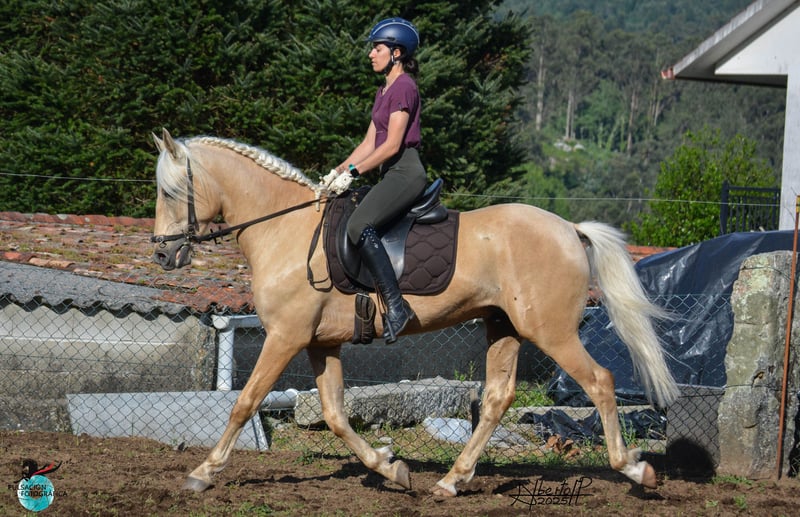 Lusitano Horse - Crossbred, with Passport. Noble and with a very good character. Started in Classical Dressage. Excellent movements, gaits, and positioning, making it very comfortable for the rider. Responds quickly to learning and has the power and endurance characteristic of Lusitano horses. Promises a bright future. Ideal for enjoying riding on a daily basis.