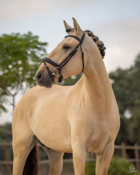 Absolutely stunning, piro-free 4-year-old dunskin with a height of 16.1 hh and clean X-rays. This young horse captures attention with his beautiful color and calm, friendly demeanor. He was born at a small breeder who has cared for him from the very beginning. From the start, he has been trained using only gentle methods with humans. He has an excellent character and is a real sweetheart. He is basic ridden with lateral work. Located in Portugal 🇵🇹 If you would like to know more about him, please send me a PM or WhatsApp at +49 178 6997334. Jasmin from Top-a Lusitano 🤗