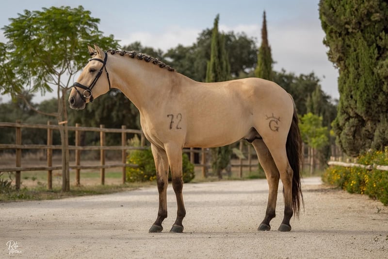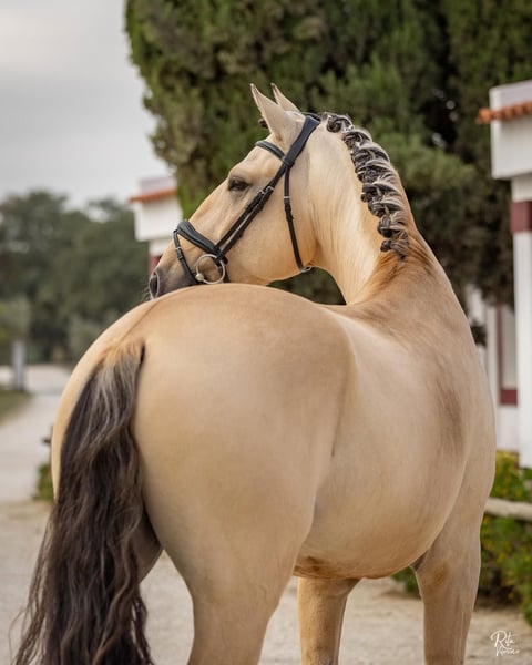 Absolutely stunning piro free 4yro dunskin with 165cm and clean xrays. This young horse is catching attention with his beautiful colour and calm and friendly presence. He was born at a small breeder who was taking care for him from the first moment. From beginning on he learned only the good way with humans. He has a very good character and he is a love bug. Basic ridden with lateral work. Located in Portugal 🇵🇹 If you want to know more about him send me a PM or WhatsApp 00491786997334. Jasmin from Top-a Lusitano🤗