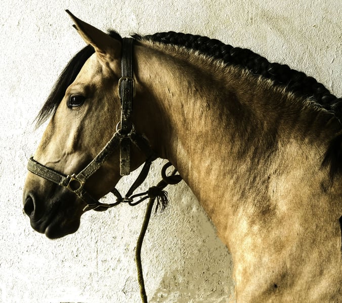 5 Jarige Lusitano hengst (v. Almansor) te koop. Geschikt voor dressuur & Working Equitation. Drie goede gangen & zeer comfortabel om te rijden. Paard met veel talent. Te bezichtigen regio Amsterdam.