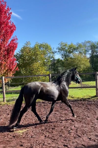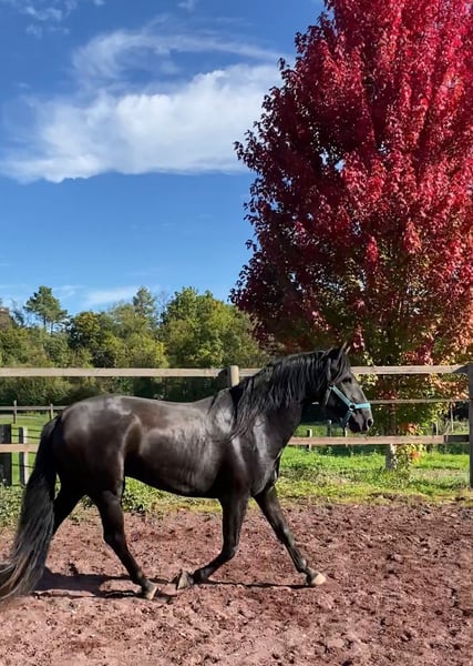 Queluz ist eine beinahe schwarze Perle, gut gebaut mit einem sehr ansprechenden Äusseren. Seine Abstammung kann sich sehen lassen, sie geht mütterlicherseits auf Xaquiro CIP zurück. Wenn Sie den ursprünglichen Typus des Lusitano lieben, sind Sie mit Queluz genau richtig. Er entspricht dem barocken, quadratischen Typus und nicht dem modernen eher im Rechteck gewachsenen Lusitano. Er zeigt drei korrekte Grundgangarten. Angeritten wurde er im Winter, sein Niveau ist das eines Anfängers. Er ist es gewohnt auf dem Viereck geritten zu werden, oder auch mal nach draussen zu gehen. Da wir keine Farben züchten, ist seine tolle, fast schwarze Farbe ohne Inzucht entstanden Vom Charakter her ist er sehr ruhig, so lässt er sich ohne Probleme mit dem Halfter von der Weide holen und an anderen Pferden (Hengsten, Stuten und Wallachen) vorbeiführen. Er ist, wie alle unsere Pferde, schmiede- und verladefromm.