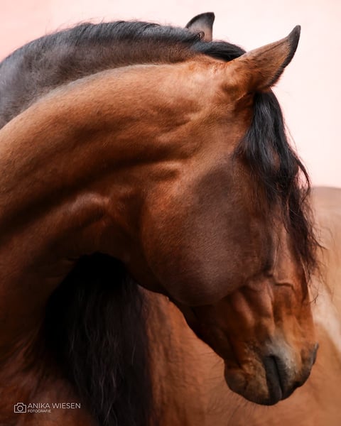 Duende ist ein 8-jähriger Hengst mit einem PSL-Vater und einer PRE-Mutter aus dem berühmten Gestüt „Bohorquez” in Spanien. Was ihn von anderen iberischen Pferden unterscheidet, ist, dass er für den Stierkampf zu Pferd gezüchtet wurde. Er ist elastisch, äußerst aufmerksam, immer ausgeglichen und bereit, Ihre Befehle auszuführen. Er baut eine sehr tiefe Verbindung zu den Menschen um ihn herum auf, er ist eines dieser Pferde, zu denen man eine Bindung aufbauen muss, deshalb braucht er ein Zuhause für immer, in dem er sehr geliebt wird. Duende hat einen außergewöhnlichen Charakter; ein Anfänger kann ihn ohne Probleme reiten und galoppieren (Videos verfügbar). Er ist ruhig auf der Weide, ein Pferd, das alles richtig machen will und bei jedem Ritt 300 % gibt. Training der GP-Übungen in dressur, er hat ein großes Talent für Piaffe, Passage und Verlängerungs- und Versammlungsübungen. Er ist ein Meisterpferd, das Ihnen einfühlsam beibringt, wie man die Hilfen einsetzt, und Ihnen auch Fehler erlaubt. Er ist eher temperamentvoll als faul, aber ohne übermäßig elektrisch zu sein, reagiert schnell auf Hilfen, geht vorwärts und ruft Sie immer, wenn Sie an seinem Stall vorbeigehen. Er ist erst 9 Jahre alt und hat einen außergewöhnlichen Kopf, ein Pferd, das Ihnen viele Jahre Freude bereiten wird. Er ist sehr sanft in der Hand, macht die Übungen mit einer Trense, ist sehr leicht zu handhaben und hat gute Röntgenbilder seines gesamten Körpers. Videos und weitere Informationen auf Anfrage erhältlich.