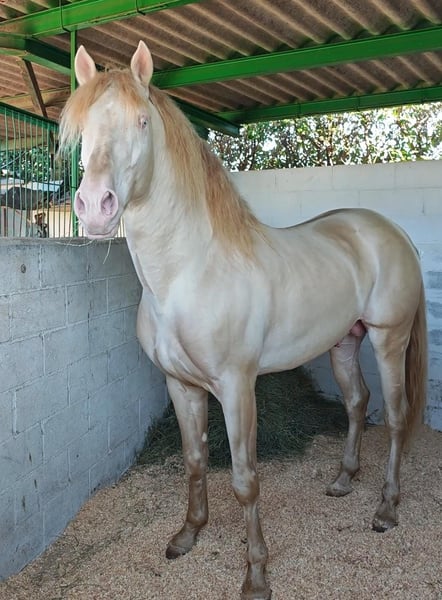 Se ofrece semental lusitano cremello de ojos azules con una gran genética para cubriciones