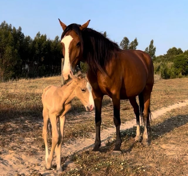 ✨ Lusitano Broodmare – in foal to LOTUS DE SENA | guaranteed Buckskin | APSL 69.5 points | 15.3 hh (produces large foals) MORENA Features: - Breed: Lusitano - Gender: Mare - Year of Birth: 2016 - Color: Bay - Height: 15.3 hh (produces large foals) 🏅 Registered with APSL – 69.5 points 🤰 In foal to LOTUS DE SENA – guaranteed Buckskin ⸻ MORENA is a charming, refined, and very well-bred Lusitano broodmare, distinguished by her excellent breeding performance, friendly nature, and large-framed offspring. Despite her height of 15.3 hh, she consistently produces impressively large, modern foals – a significant advantage for breeders. She is approved as a broodmare with 69.5 points by the APSL and has already foaled three foals. At age 6, MORENA was lightly backed (walk, trot, canter a few times), then returned to breeding, and is very easy and pleasant to handle. ⸻ 🤰 Currently in foal to LOTUS DE SENA – guaranteed Buckskin! MORENA is currently pregnant by LOTUS DE SENA, a striking, modern Lusitano stallion. ➡️ 100% color certainty: the foal will be Buckskin. 📅 Expected foaling date: June 1, 2026 Special note: She has already foaled two foals by LOTUS DE SENA – both Buckskin, both with extensive white markings, large, and of modern type. Photos from the pairing are available and serve as an impressive example of her inheritance. ⸻ 📸 Photos of a previous foal are available in the listing ✔ Large-framed ✔ Very correct conformation ✔ Modern appearance ✔ Striking color with white markings ⸻ 💛 Character & Handling - Friendly & open - Easy to handle - Social in herd - Calm, pleasant temperament - Reliable broodmare ⸻ 🎯 Potential Uses - High-quality, colorful broodmare - Ideal for modern Lusitano lines - Re-initiating riding horse training is generally possible 📞 Contact & Viewing MORENA can be visited by appointment. I look forward to serious inquiries and am happy to take the time for a personal conversation.