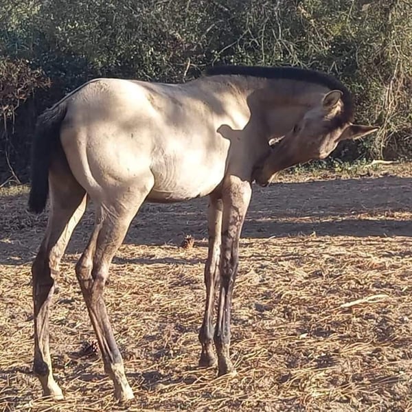 Unsere Tara haben wir wegen ihrer sehr speziellen Farbe angekauft. Da sie für unsere Zucht jedoch zu klein bleibt, steht sie zum Verkauf. Sie kennt die Longe und ist halfterführig. Die stark ausgeprägten Wildabzeichen, der dunkler gehaltene Kopf, einfach ein Traum. Tara ist genetisch sehr interessant: A/a, E/e, CR/n, nd1/nd1, D/n Auf dem letzten Foto ist der Vater zu sehen, das Video ist aktuell. Da ich meine Farbzucht in Spanien aufgebaut habe, kann man Tara in Malaga besuchen.