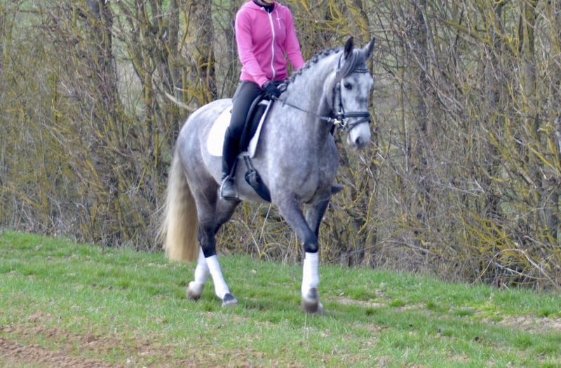 ✨ Rittige Lusitano Stute mit angenehmer Art sucht neues Zuhause ✨ Die wichtigsten Fakten: • Name: Ella • Alter: 5 Jahre • Stockmaß: ca. 1,60 m • Rasse: Lusitano • Farbe: Schimmel — Zum Verkauf steht eine 5-jährige Lusitano Stute aus Privatbesitz. Ella ist bereits angeritten und zeigt sich dabei sehr unkompliziert, fein an den Hilfen und angenehm zu sitzen. Unter dem Reiter vermittelt sie ein sicheres, ruhiges Gefühl und arbeitet aufmerksam mit. Besonders hervorzuheben ist ihre klare, ehrliche Art – sie ist im Kopf absolut sortiert und lässt sich jederzeit gut händeln. Auch im Gelände zeigt sie sich entspannt, gelassen und unaufgeregt. Im täglichen Umgang ist sie freundlich, brav und unkompliziert. — ✔ angeritten ✔ fein zu reiten ✔ klar im Kopf ✔ brav im Umgang ✔ auch für leichtere Reiter / Jugendliche geeignet — Videos vom Reiten (Gelände), Alltag und Freilauf sind vorhanden und können gerne verschickt werden. Regelmäßig geimpft und entwurmt. AKU kurzfristig möglich – Tierarztwahl und Kosten durch Käufer. Transport kann organisiert werden. Preis bei schneller, unkomplizierter Entscheidung verhandelbar. — Bei ernsthaftem Interesse gerne melden.