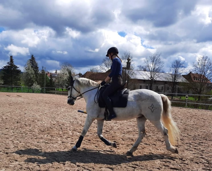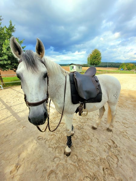 Name: Rayo Breed: Lusitano Mix Age: 19 years Height: 15.5 hh Gender: Gelding Rayo is an absolute heart horse – sensitive, reliable, and resilient. He is very people-oriented, always eager to please, and works with great joy alongside his rider. He has been ridden mainly for leisure. We regularly had riding and groundwork sessions in the riding arena. He is also regularly handled on the ground. Lunging, including with a double lunge, is part of his training. He enjoys hacking out – both alone and in a group. He remains calm and brave outdoors, with no issues crossing water or exhibiting any bad habits. He has also been introduced to some classical dressage exercises. He is accustomed to working with children, showing particular patience and gentleness in such interactions. Naturally, he is loading well into the trailer and is farrier-friendly. Rayo previously suffered from a suspensory ligament injury; he is currently sound and back in training. He still needs to be built up gradually, but I am confident that with the right training, he will be fully fit again. He has a mild sweet itch, which we manage well without blanketing. Rayo needs age-appropriate promotion and challenges. He is especially motivated when working on varied exercises such as pole work, ground driving, lunging, or equikinetic. My wish is for Rayo to find a lifelong home where he receives lots of attention and care. An open stable or a box with daily turnout would be ideal. I am looking for people who will lovingly support him and attend to his needs. It is with a heavy heart that I have to part with him for personal reasons. I am happy to share more details privately. Rayo is a true heart horse with a unique character, giving so much back to his person. I hope to find someone who will love him as much as I do. All tack and equipment can be included if desired. Place before price.