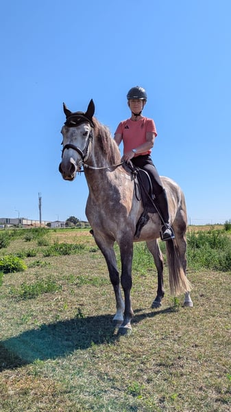 Remate Rae "Willi" is a stunning Lusitano gelding, born in 2021, standing approximately 15.7 hands (about 157 cm) and exhibiting an elegant gray coat. He was born in Portugal at a well-known breeder (Andrade) and imported to Germany at the age of two and a half years. Willi is compact and harmoniously built, very well proportioned, and impresses with his outstanding presence as well as his high-quality pedigree. He is healthy and robust, with no history of lameness, colic, allergies, or similar issues. Upon arrival in Germany, he briefly showed mild head-shaking, which completely resolved within a few days. Willi does not paddock with his front legs and is comfortable and easy to sit. Character-wise, Willi is an exceptionally loving, honest, and human-oriented horse. He is open-minded, well-behaved, intelligent, playful, and very well-trained. His eagerness to learn, talent, and joy in work make him a special partner. Willi consistently demonstrates motivation, cooperation, and reliability, and has a big heart. In handling, he is straightforward and well-behaved. He is accustomed to box, pasture, and herd life and is absolutely herd-compatible. He behaves calmly and politely at the farrier and during loading. Additionally, he is used to various environmental stimuli and is familiar with farm vehicles, dogs, roads, children, and more. Willi was gently backed at four years old and is currently in a age-appropriate, solid training following the principles of École Légère. He is familiar with indoor arenas, riding arenas, and terrain, and is very receptive to classical dressage work, including liberty training. Under saddle, he responds to subtle aids, shows no vices, and has good basic gaits. His training emphasizes health preservation and sustainability. Willi is ideally suited for Working Equitation, dressage, Western riding, or versatile leisure riding at a good level. With further development and consistent, horse-friendly training, he will become a reliable and performance-ready partner. He is looking for an experienced rider with a maximum rider weight of around 80 kg, preferably with young horse experience, who is willing to continue his training together with a trainer. He is not suitable for children or beginners. The owners prioritize a long-term, loving home with understanding for responsible training and health maintenance. His sale is a difficult decision due to the owner's retirement from riding, and will only be entrusted to caring, appreciative hands. Willi is a quality horse with great potential, versatile use possibilities, and an extraordinary character.