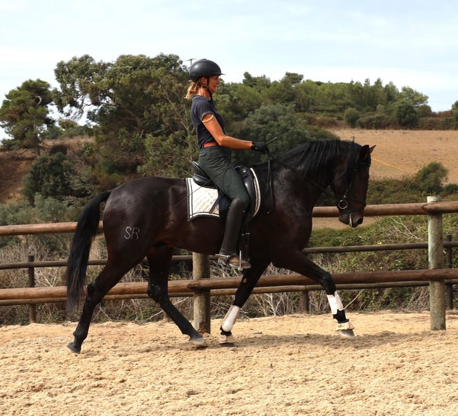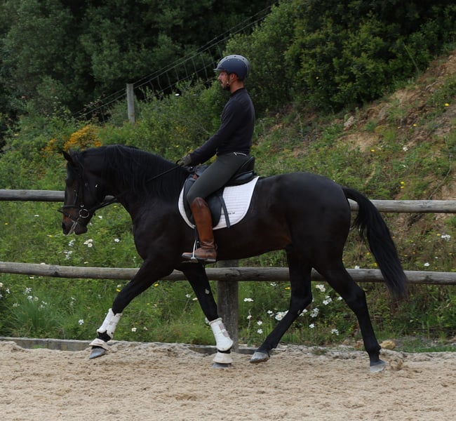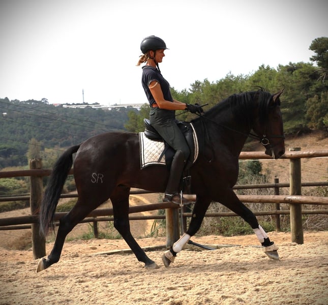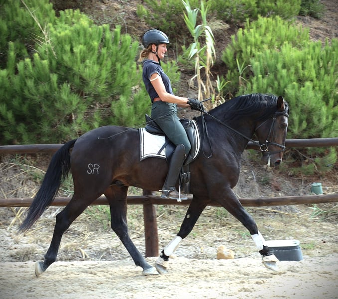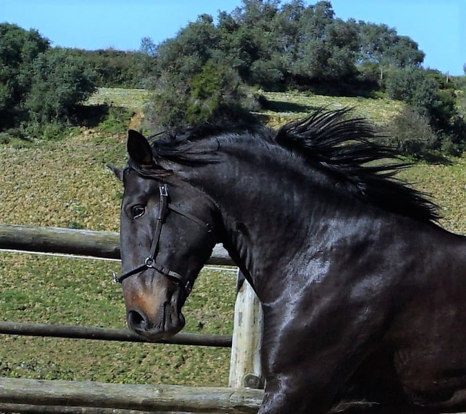 Ravel SR ist ein gross werdender sehr vielversprechender ausdrucksvoller zutraulicher Lusitanowallach Die guten Bewegunge seiner Eltern versprechen auf ihn abgefaerbt zu haben. Lisboa ist ein Schwester zum Koerungssieger Homero. Der Vater geht erfolgreich Dressurprufungen und zu dem unglaublichen Grossvater Embuçado brauch man ja nichts mehr zu sagen . Er wird ein grosser Hengst werden, ca 1.68m . Mutter 1,67 m und Vater 1.69m .Volle APSl papiere Er wurde heute durchgeroengt und fuer gut befunden !!!hurrah Piro negativ getestet!!!! So, jetzt hat Rvel sein erstes Turnier gemeistert: Dressurpruefung gewonnen und Campeonato iberico in seiner Klasse auch gewonnen. Was will man mehr? Absolut verladesicher.ist er auch. Preisreduzierung aus persoehnlichen Gruenden