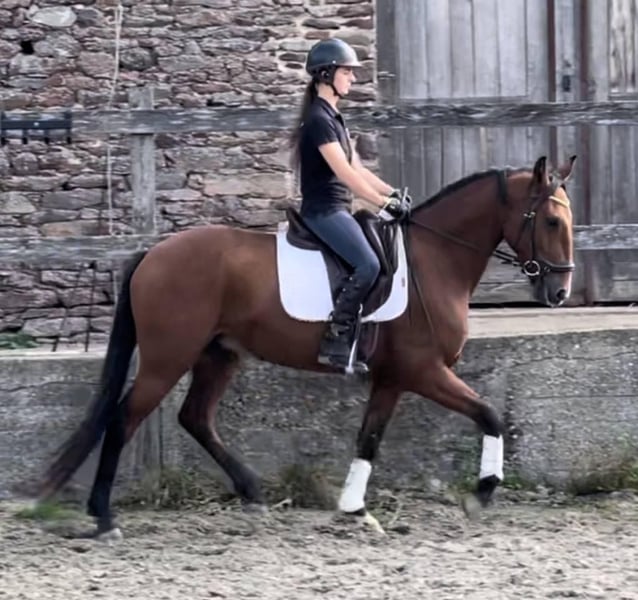 PALERMO DE ST JEAN is a Lusitano Thoroughbred gelding. His sire is the famous ESCORIAL SRB, participant in the 2021 Olympic Games and the 2022 World Championships, a direct descendant of SPARTACUS CSM. His dam, DANOUK DE ST JEAN, is the daughter of VIOLINO DO RETIRO. PALERMO DE ST JEAN was purchased in France and later transported to Portugal, where he spent several years being cherished. PALERMO DE ST JEAN is a people-oriented and intelligent horse who progresses quickly under saddle. He is comfortable, light to ride, always forward, and was broken in the Brocéliande forest. His gaits, with good hind engagement, his easy contact, and his compact build make him naturally suited for dressage competition. He is reliable and enjoyable for outdoor riding and also has potential for a working equitation career. One quickly becomes attached to PALERMO — he is a horse with fire beneath the ice, a remarkable personality.