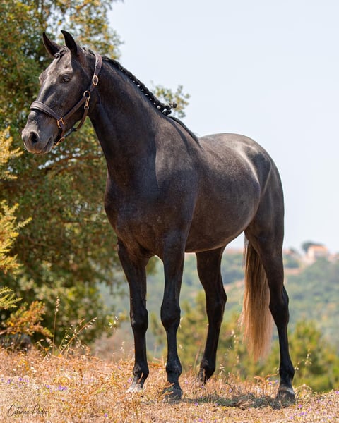 Caballo encantador con grandes movimientos Ofrecemos a la venta un impresionante semental Lusitano del año 2020. Este hermoso tordo no solo destaca por su elegante apariencia, sino también por su talento y versatilidad en la doma. Características: Raza: Lusitano Sexo: Semental Año de nacimiento: 2020 Color: Tordo Altura: 162 cm Este semental ya muestra un gran potencial en la doma y cuenta con todas las condiciones para tener éxito en esta disciplina. Su temperamento equilibrado y su disposición para aprender lo convierten en un compañero ideal para jinetes ambiciosos. Si está buscando un caballo talentoso y con carácter fuerte, que pueda brillar tanto en el entrenamiento como en competiciones, este Lusitano es la elección perfecta. Se muestra muy tranquilo y es un verdadero tesoro en el manejo. Se dispone de radiografías impecables. Puedo enviar más fotos y videos con gusto si está interesado.