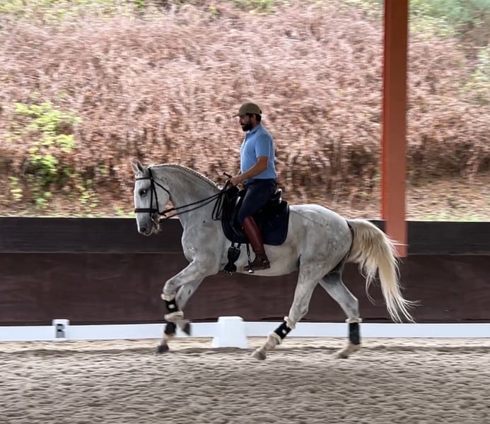 Stunning Lusitano gelding with top lineage and great potential QUIXOTE Features: - Breed: Lusitano - Sex: Gelding - Year of Birth: 2020 - Color: Grey (Dappled) - Height: 16.1 hh ⸻ ✨ Pedigree that speaks for itself QUIXOTE comes from top lines around the renowned ZAIRE, with numerous recommended and premium stallions and mares in his pedigree. Notably: 🌟 Dam UNICA SS – an impressive 81 points! A clear testament to excellent conformation and rideability. ⸻ 🧠 Character & Temperament QUIXOTE impresses with a very kind, balanced, and people-oriented nature. He loves attention, enjoys being in the paddock, and is absolutely straightforward in daily handling. He has already been to Golegã, where he remained confident and calm. ⸻ 🏇 Training Level A young gelding with a solid foundation and great talent for the future: ✔ Lateral movements ✔ Walk-trot and trot-canter transitions ✔ Beginning flying changes ✔ Supple, elastic, and responsive to aids He is free of Piroplasmosis and thus ideally prepared for international competition. ⸻ 💫 A promising young horse not to be overlooked QUIXOTE combines top genetics, excellent character, and significant talent – perfect for ambitious riders seeking a horse with potential for Working Equitation, dressage, or serious leisure riding. ⸻ 📞 Contact & Viewing QUIXOTE can be viewed by appointment. I look forward to serious inquiries and am happy to take the time for a personal conversation.