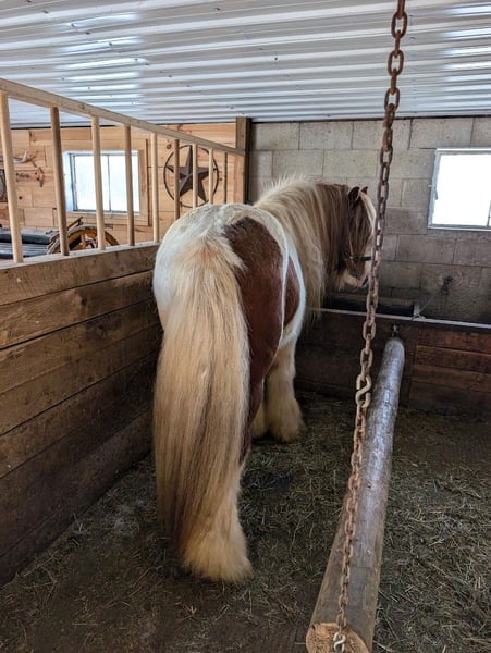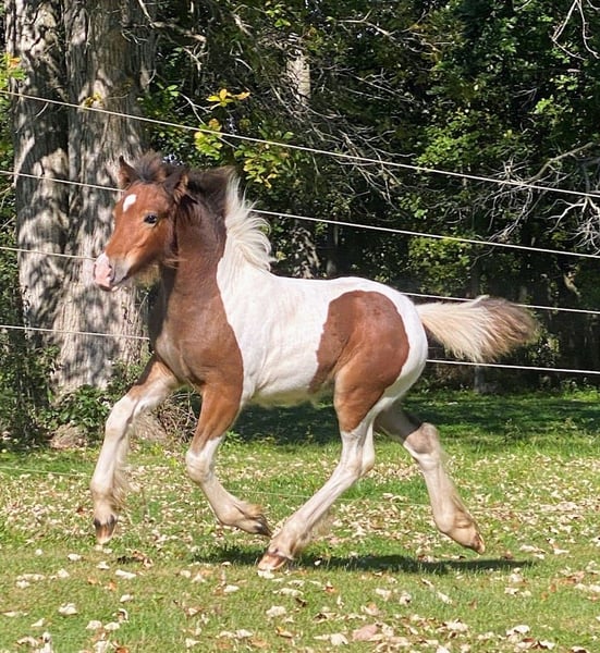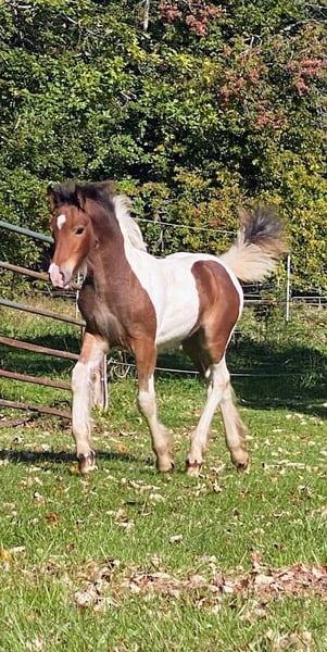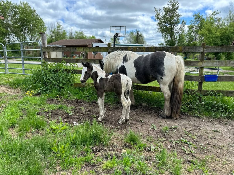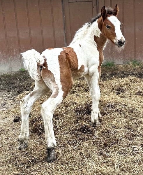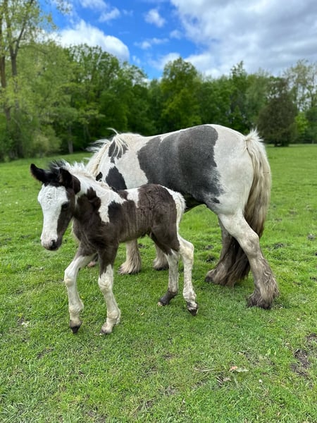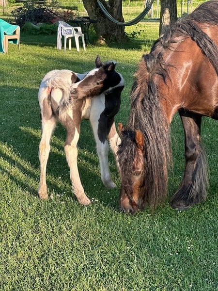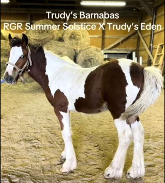 All our foals get the upmost care and training. Here are a few of the foals from both of my mares. Both Mares Eden a Liver Chestnut and Lois a Stout Black and White mare are in foal for 2026. They are in foal to Tom's Prime Time Apache a ride and drive super calm stallion who is Pssm Negative. He is a Liver Chestnut and White Stud who produces color, calmness and intelligence. Let me know if you have interest in either one of these foals or more information.