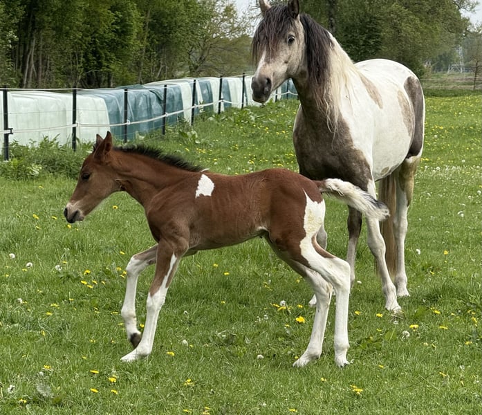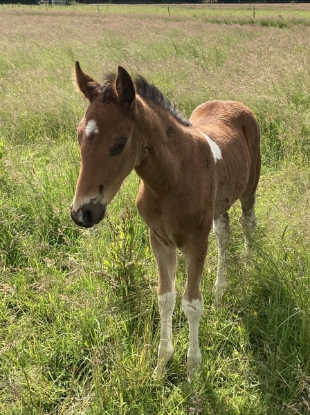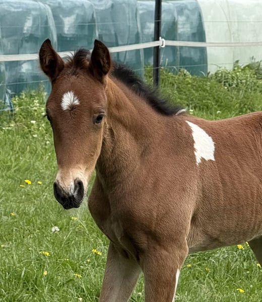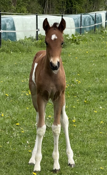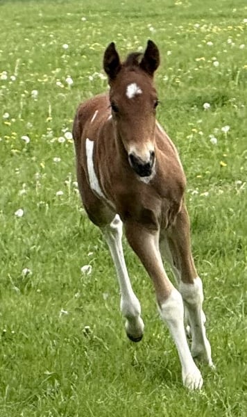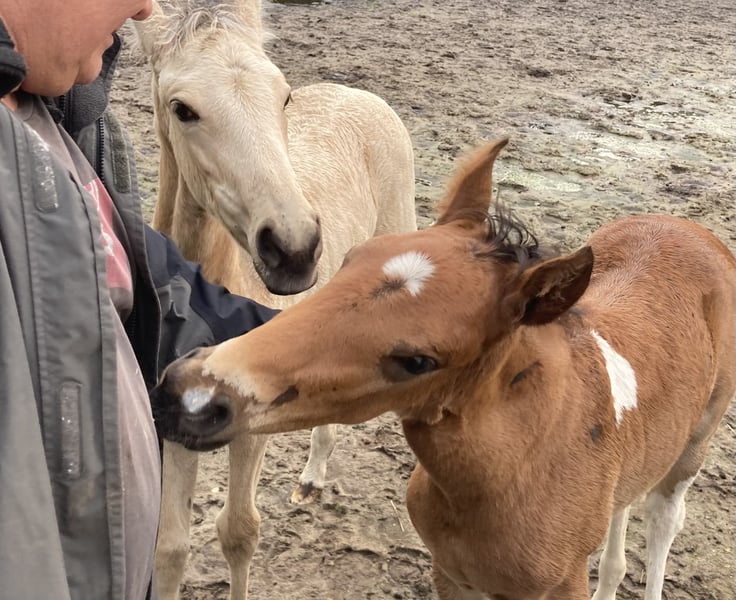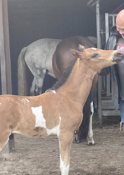 Enio vom Hartungshof gelang es vom ersten Lebenstag an mich "um den Finger zu wickeln", dermaßen viel "Will to please", Präsenz und Neugier ab Tag 1 gibt es bei einem Fohlen selten. Und so ist es auch geblieben, er findet es toll, wenn man sich mit ihm beschäftigt. Dazu kommt eine sehr gute Gangveranlagung zu Marcha Batida und Marcha Picada, ein guter Schritt und eine gut gesprungene Galoppade. Er wird körperlich nicht der größte werden sondern bei ca.150cm Stockmaß ausgewachsen sein. Wie alle unsere Fohlen hat er das Fohlen ABC gelernt, ist gegen Tetanus, Influenza und Herpes geimpft und regelmäßig entwurmt. Hufkorrektur findet bei uns alle 7 Wochen statt. Enio lebt in einer Gruppe von ca. 20 Pferden im Alter von 6 Monaten bis 29 Jahren in Offenstall, Paddock und auf großer Weide. "Kindergarten" und "Erziehungsberechtigte" zusammen, das ergänzt sich gut.