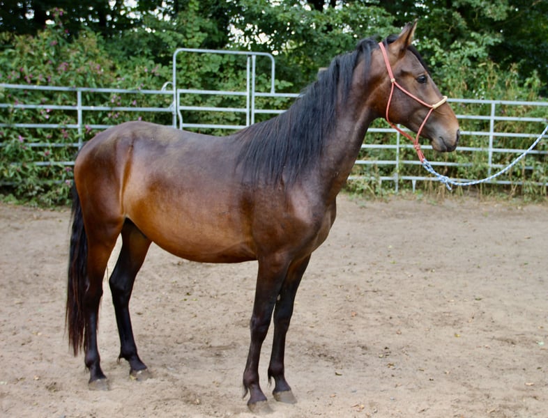 Poney de Paso, étalon : Mangalarga Marchador x Paso Fino – une combinaison rare pour l’élevage et le sport. Magnifique jeune étalon bai, doté d’une crinière abondante et d’une allure baroque, inscrit en tant que cheval de Paso avec tous ses papiers. Il combine la légèreté, l’élégance et l’aptitude à l’apprentissage du Paso Fino avec la robustesse, la sérénité et la silhouette harmonieuse du Mangalarga Marchador. Déjà très agile, bien équilibré et attentif, il présente toutes les qualités pour devenir un cheval de selle polyvalent et confortable. Sa silhouette harmonieuse et son tempérament amical le rendent également intéressant pour une utilisation en élevage. Une croisure exceptionnelle avec un bel avenir – pour les amateurs de chevaux de Paso d’exception. À propos de la race : Caballo de Paso – ici, un croisement entre Mangalarga Marchador et Paso Fino. En Allemagne, ils sont enregistrés comme chevaux de Paso, une race jeune basée sur les chevaux de gait latino-américains, dont l’objectif est d’élever des chevaux de loisir et de sport, amicaux, gaités et polyvalents, pour le marché européen. Pour toute question sérieuse ou pour organiser une visite, nous restons à votre disposition pour un échange personnalisé.