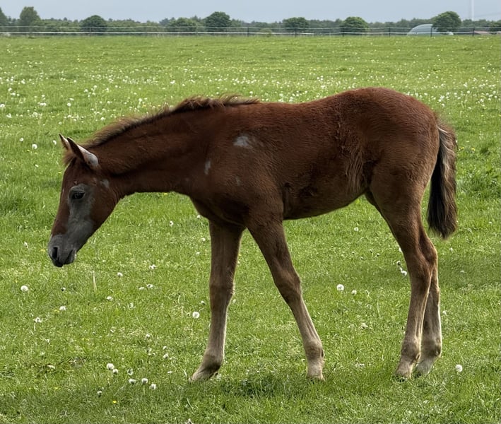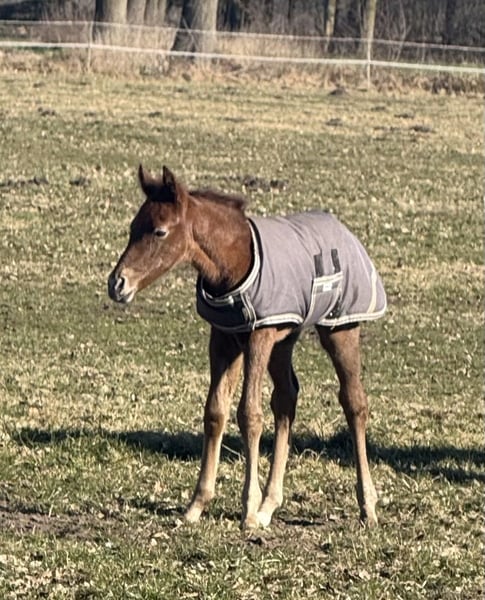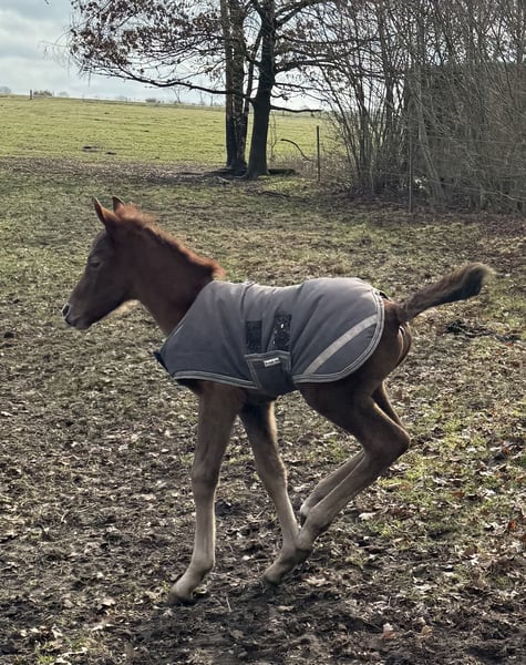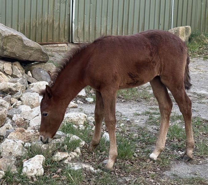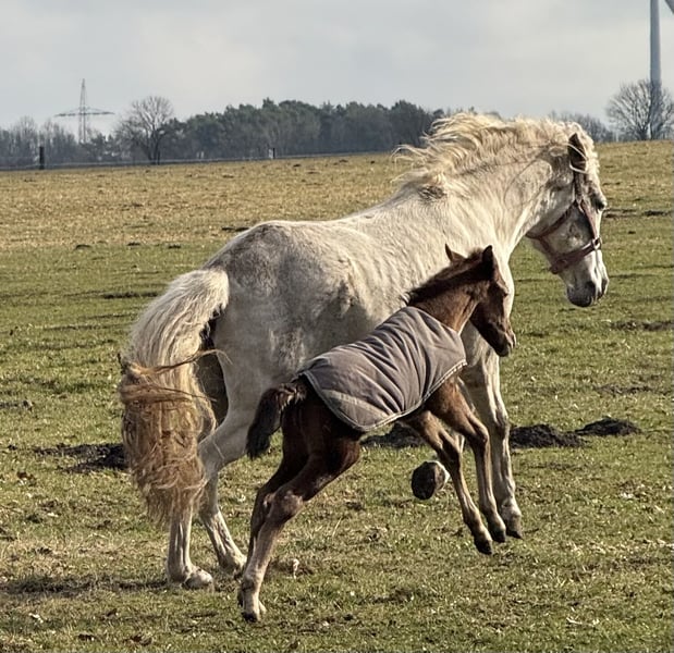 Finja vom Hartungshof geb.am: 09.03.2025 ist eine besonders feine, hübsche, lebensfrohe und neugierige kleine Dame. Sie ist das letzte Fohlen unserer tollen Fada, die leider im Herbst 2025 im Alter von 21 Jahren einen Unfall erlitt und deshalb eingeschläfert werden musste. Finja ist schon sehr selbständig, zeigt sehr gute Bewegungen, und wie alle ihre Geschwister, eine für einen Marchador erstklassige Galoppade. Ihre Gangveranlagung ist die Marcha Batida und vielleicht auch die Marcha Picada Das ganze gepaart mit einem sensiblen und feinem Wesen. Sie beherrscht das Fohlen ABC, ist geimpft gegen Influenza, Tetanus und Herpes, regelmäßig entwurmt und alle 7 Wochen erfolgte Hufkorrektur. Wenn sie Ihren Vollgeschwistern nacheifert, wird sie bei korrektem und gutem Fundament für einen Marchador recht groß und im Umgang sehr unkompliziert. Auch von ihr existieren auf Grund meiner eigenen gesundheitlichen Probleme relativ wenige Bilder.