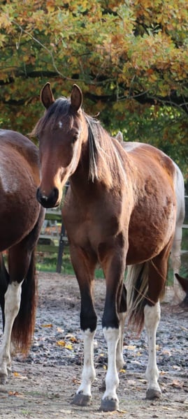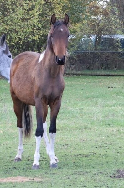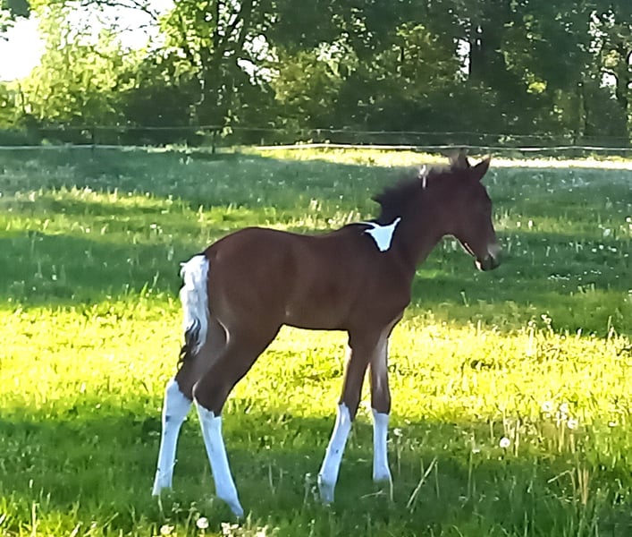 Espresso vom Hartungshof, geb.am: 20.04.2024 ist ein bildhübscher Braunscheckwallach mit wenig Weiß, er ist sehr verschmust und sehr neugierig, kann das Fohlen / Jungpferde ABC (haltftern, geführt werden, angebunden sein (natürlich im Moment nur kurzzeitig) er kennt Hufe geben und Hufbearbeitung). Er hat hervorragende Grundgangarten, ein sehr korrektes Fundament und seine Gangveranlagung sind die Marcha Batida und die Marcha Picada. Außerdem verfügt er über einen für ein Gangpferd sehr gut gesprungenen Galopp. Espresso lebt in einer Gruppe von 20 Pferden im Alter zwischen 29 Jahren und 6 Monaten. Hier leisten die älteren Semester wertvolle Erziehungsarbeit und die Jungen sorgen für die "Freizeitgestaltung". Sein Endmaß wird denke ich zwischen 150 - 155 cm Stockmaß sein.