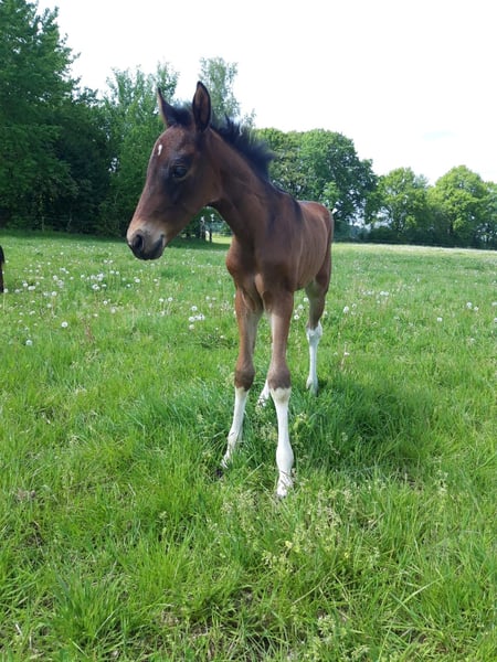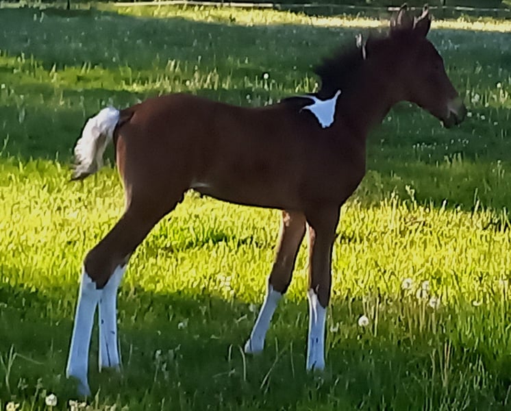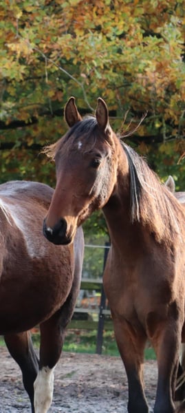 Espresso du Hartungshof, né le 20/04/2025, est un magnifique hongre bai avec peu de blanc. Il est très câlin, curieux et s’adapte bien à l’apprentissage du poulain / jeune cheval (halte, conduite, mise en longe – naturellement pour de courtes périodes pour le moment). Il connaît la mise en place des pieds et le soin des sabots. Il possède d’excellentes allures de base, une démarche très correcte et ses dispositions naturelles pour le pas marcha batida et la marcha picada. De plus, il a un galop très bien sauté pour un cheval de gait. Espresso vit en groupe avec 20 chevaux âgés de 6 mois à 29 ans. Les plus âgés apportent une précieuse éducation, tandis que les jeunes participent à l’animation du groupe. Sa taille finale devrait se situer entre 150 et 155 cm au garrot.