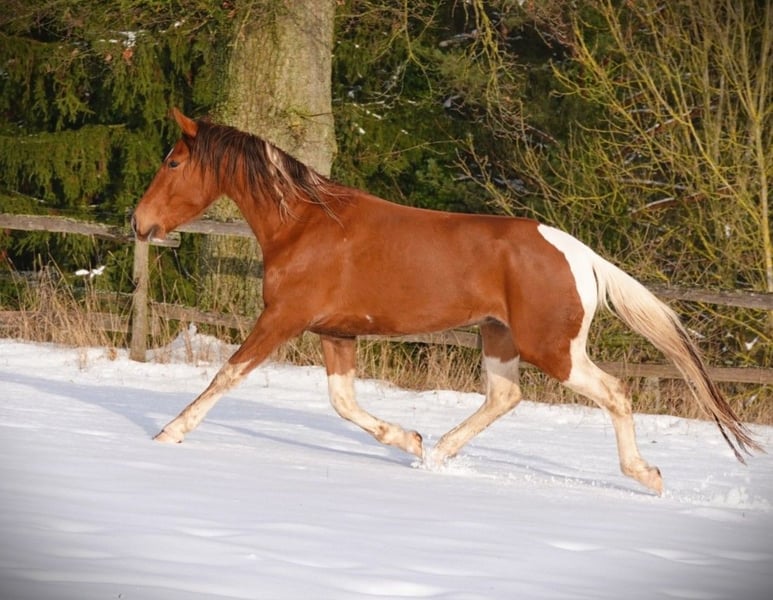 Bucephalos ist ein großer, reinrassiger Mangalarga Marchador Wallach mit einer beeindruckenden brasilianischen Blutlinie und außergewöhnlicher Gangqualität. Er zeigt von Natur aus komfortable, elastische Bewegungen und eine gleichmäßige, rassetypische Vier-Takt-Gangart, die das Reiten sehr angenehm macht. Der Wallach ist leicht angeritten und wird behutsam weiter ausgebildet. Dabei entwickelt er sich stetig, lernt schnell und arbeitet zuverlässig mit seinem Reiter zusammen. Bucephalos ist klar auf seinen Reiter ausgerichtet und zeigt dabei eine bemerkenswerte Lernbereitschaft. Sein Körperbau ist kräftig und harmonisch, mit einem ausdrucksstarken Erscheinungsbild, das sowohl Größe als auch Substanz vermittelt. Die Brauntobiano-Färbung unterstreicht seine Eleganz und macht ihn zu einem auffälligen, seltenen Vertreter seiner Rasse. Bucephalos verfügt über die Basis und den Charakter, um sich zu einem vielseitigen, leistungsfähigen und ausdrucksstarken Reitpferd zu entwickeln. Er vereint Größe, seltene Blutlinien, natürliche Gangtalente und korrekten Körperbau in einer Form, die nur sehr selten zu finden ist. Ein außergewöhnlicher Mangalarga Marchador Wallach, der erfahrene Reiter anspricht, die ein hochwertiges, zukunftsorientiertes Pferd suchen für Ausbildung, Show oder sportliche Perspektiven. Standort: Deutschland.