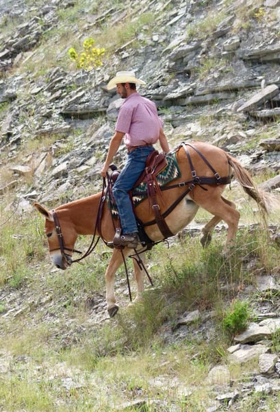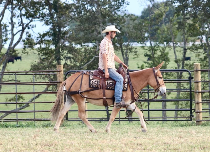 ONLINE AUCTION Place your bids at www.PlatinumEquineAuction.com Starting Bid $3500 Auction ends September 29th, 2024 Need a new saddle? Check out White Rock Saddles on our website or Facebook! Eleanor is a 9 year old, 14 hand Molly mule. I don’t think there are enough good things to say about her. She is very stocky and stout and has no issues carrying larger adults all day long out on the trails or in the mountains. Safe, quiet, and gentle are three great adjectives for her. The next best one is gorgeous! When it comes to riding, she is a joy! She walks, jogs, and lopes. All three gaits are smooth and comfortable to ride. She is extremely happy to ride on a full drape. If you put her at a pace, she will stay there. She is a bit of a more “whoa than go” type of mule. She is not lazy and she does move forward easily, but she is happiest going and easier paces. Eleanor neck reins nicely and is light in the mouth. She has a nice stop on her, backs up, and side passes. You can open and close gaits on her. We like to use her as a little utility mule. We have dragged and moved bunk feeders with her, carried equipment around and ponied kids on ponies behind her. She is the ideal mule to gather a herd horses and mules on. She will cut back and forth and turn them back if needed. When the herd gets excited and gallops off, she stays quiet and will walk or jog behind them and not get excited. She does the same when gathering cattle. She isn’t easily excited. We’ve had the whole family on her with no issues. She stands well for the farrier. She doesn’t mind her mane being clipped, she stands quietly to tack and untack, loads and unloads easily, and overall has nice ground manners. Eleanor has been on lots of camping trips and does well tied out on the high line overnight. She is sure footed and confident on the trails. She will ride in a britchen or crupper. She also rides just as well in a halter and lead rope or bosal as she does with a bridle on. Eleanor is just an overall really nice mule that we love to have around and ride. For more information, call or text Sammi Waugh 704-798-5497 Located in Brooksville, KY. ONLINE AUCTION Place your bids at www.PlatinumEquineAuction.com Starting Bid $3500 Auction ends September 29th, 2024 Need a new saddle? Check out White Rock Saddles on our website or Facebook!