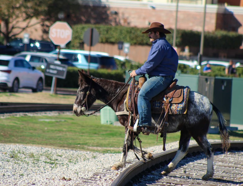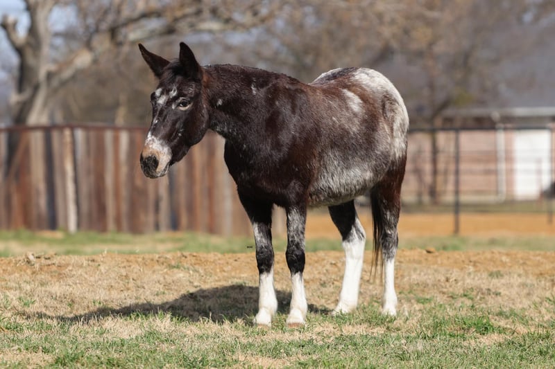 "AVAILABLE ON ONLINE HORSE AUCTION AT www DOT PlatinumEquineAuction DOT com BIDDING OPEN NOW thru SUNDAY | MARCH 1ST! *Final price will be determined on auction site* CONSIGNOR CONTACT INFO: M $ Performance Horses & Ponies 661-817-9120 LOCATION: Stephenville, TX Cali is a 6-year-old Appaloosa molly mule standing 13.0 hands tall and she is the total package wrapped in chrome. This little mule has been ranch seasoned and works weekly at the sale barn penning back cattle and loading trucks — she knows a full day’s work and shows up ready every single time. Gritty, honest, and all heart, she’ll stay with you from sunup to sundown without ever looking to quit. Out on the trails, Cali is bold and sure-footed. Steep hills, rough country, water crossings, bridges, and deadfall logs are just another day at the office. She rides soft and correct in the arena, walks, trots, and lopes nice circles, has a good stop, and backs up with ease. She’s been hauled to town, is traffic safe, and has even marched right down Exchange Avenue at the iconic Fort Worth Stockyards through heavy crowds, loud music, and nonstop commotion like a seasoned pro. She’s flag broke, will drag logs, track cattle, and has been started on the lead steer. Cali has even pulled a buggy and handled it with confidence. Easy to catch, stands tied, loads and unloads quietly, and you can saddle her up and step right on. If you’re looking for a tough, classy, do-it-all mule with eye appeal and real-world experience — Cali is it. We are open to anyone interested in her to schedule a time to come see her or if you can’t make it schedule a FaceTime showing to see her. If you need help with transport don’t hesitate to ask we have a list of reputable haulers that can get her safely to your doorstep WORLD WIDE including, Alaska , Mexico, Hawaii, Canada and anywhere in between. Located in Stephenville,Texas Contact Michelle at M$ Performance Horses & Ponies LLC 661-817-9120