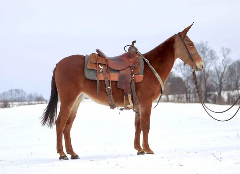 ONLINE AUCTION Place your bids at www.PlatinumEquineAuction.com Starting Bid $3500 Auction ends February 9th, 2025 Need a new saddle? Check out White Rock Saddles on our website or Facebook! Rose is an 8 year old, 14 hand gaited Molly mule. Rose has a very nice ground covering, ear flopping walk when she gets in gear and headed down the road or trail. Rose is experienced on the trails. She crosses natural obstacles with ease. Goes through and across water crossings without worry. She is sure footed on narrow and technical trails. She steps over logs and goes through ditches. Rose rides out alone or with a group. She can keep up with other gaited animals or ride slower with quarter type. She is a mountain goat type, if you point her nose, you better be ready to go! She is a forward mule with a lot of heart to ride all day. Rose stands nicely to saddle. She ties and clips. Has nice stall manners. Loads and unloads easily. Rose rides off nicely if she has had time off, but like anyone excels when ridden in a regular riding program. She has been on quite a few big, organized rides. We have ridden her through our herd of cows and checking fences with no issues. Rose is the type of mule that you need to earn her trust and respect. It’s easy to get, but experienced mule owners understand her type. She will do best in a home with 1 or 2 riders, not so much for a guest or “dude” type of mule. With that being said, she will give her person 110% every ride and only gets better the more she knows and understands her person. For more information, please call or text Sammi Waugh 704-798-5497 Located in Brooksville, KY. ONLINE AUCTION Place your bids at www.PlatinumEquineAuction.com Starting Bid $3500 Auction ends February 9th, 2025 Need a new saddle? Check out White Rock Saddles on our website or Facebook!