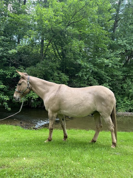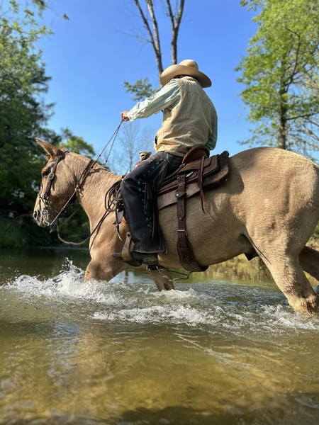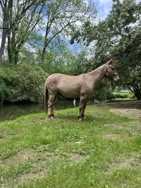 ONLINE AUCTION Place your bids at www.PlatinumEquineAuction.com Starting Bid $3500 Auction ends June 9th, 2024 Need a new saddle? Check out White Rock Saddles on our website or Facebook! Homer is a 9-year-old buckskin/dun john mule with a loving disposition. He stands 14.1 on the stick. We have known him for three years and owned him the last two. Homer is being offered for sale by no fault of his own. This mule has experiences of every kind. He has traveled from Texas to Arkansas to Pennsylvania. He has been extensively trail-ridden through all kinds of terrain and confidently navigates through thick woods and deep waters. He will ride in company or by himself and easily competes in trail competitions. Homer moves off your leg, side passes, neck reins, and is soft to the bridle. Homer was taught to lay down to mount and dismount, but will also stand to get on and off. Point his nose, and he will do just as you want. With his “get to work” attitude Homer works cattle, opens gates, plows fields, pulls carriages, ponies race horses, and flags babies. He also gives beginner and intermediate riding lessons. Reach out for more information about his work. Homer is a consistent ride and the same ride every time. He’s big ears and bray will be missed around the farm. Homer is one of a kind. Located in Cochranville, PA. Contact Chris Tejero 484-326-4618 with any questions. ONLINE AUCTION Place your bids at www.PlatinumEquineAuction.com Starting Bid $3500 Auction ends June 9th, 2024 Need a new saddle? Check out White Rock Saddles on our website or Facebook!
