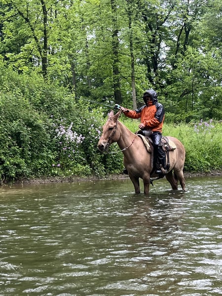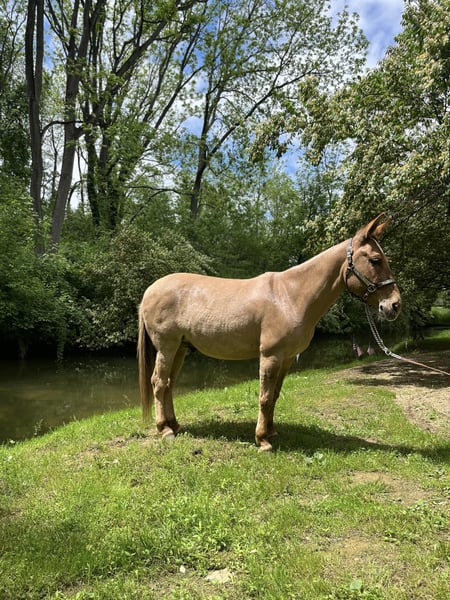 ONLINE-AUKTION Geben Sie Ihre Gebote unter www.PlatinumEquineAuction.com ab. Startgebot $3500 Die Auktion endet am 9. Juni 2024 Brauchen Sie einen neuen Sattel? Schauen Sie sich White Rock Saddles auf unserer Website oder Facebook an! Homer ist ein 9 Jahre altes buckskin/dun john Maultier mit einem liebevollen Gemüt. Er hat eine Stockmaß von 14,1. Wir kennen ihn seit drei Jahren und besaßen ihn die letzten zwei Jahre. Homer wird ohne eigenes Verschulden zum Verkauf angeboten. Dieses Maultier hat Erfahrungen jeder Art. Er ist von Texas über Arkansas bis Pennsylvania gereist. Er wurde ausgiebig durch alle Arten von Gelände geritten und navigiert sicher durch dichte Wälder und tiefe Gewässer. Er reitet in Gesellschaft oder allein und nimmt problemlos an Trailwettbewerben teil. Homer geht am Bein, an der Seite, am Halszügel und ist sanft zur Zäumung. Homer wurde beigebracht, sich zum Auf- und Absteigen hinzulegen, aber er steht auch auf, um auf- und abzusteigen. Zeigen Sie ihm die Nase, und er macht genau das, was Sie wollen. Mit seiner Arbeitseinstellung arbeitet Homer an Rindern, öffnet Tore, pflügt Felder, zieht Kutschen, Ponys und Rennpferde und führt Babys. Er gibt auch Reitunterricht für Anfänger und Fortgeschrittene. Weitere Informationen über seine Arbeit erhalten Sie auf Anfrage. Homer ist ein beständiges Pferd, das jedes Mal gleich reitet. Seine großen Ohren und sein Schnauben werden auf dem Hof vermisst werden. Homer ist ein Unikat. Er befindet sich in Cochranville, PA. Kontaktieren Sie Chris Tejero 484-326-4618 bei Fragen. ONLINE-AUKTION Geben Sie Ihre Gebote unter www.PlatinumEquineAuction.com ab. Startgebot $3500 Die Auktion endet am 9. Juni 2024. Brauchen Sie einen neuen Sattel? Schauen Sie sich White Rock Saddles auf unserer Website oder Facebook an!