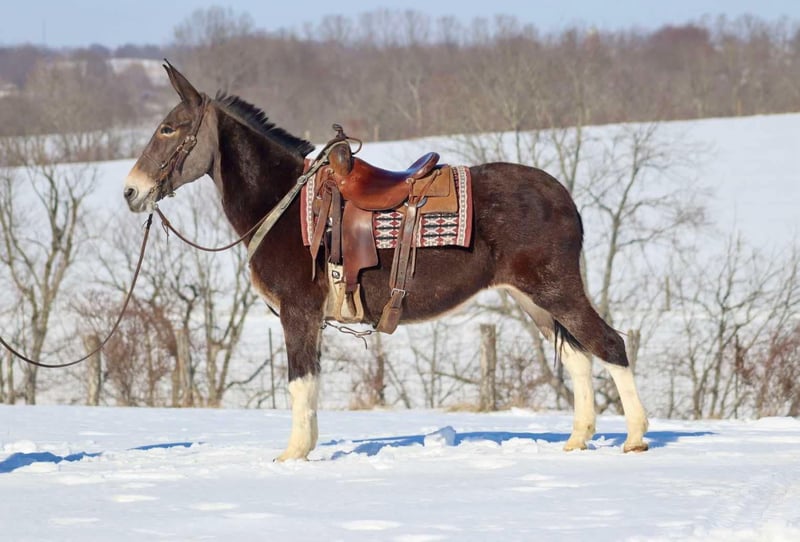 ONLINE AUCTION Place your bids at www.PlatinumEquineAuction.com Starting Bid $3500 Auction ends February 3rd, 2025 Need a new saddle? Check out White Rock Saddles on our website or Facebook! Trixie is a 15.2 hand, 10 year old Molly mule. She is a big, eye catching Molly! Trixie has a nice, ground covering walk that gets you down the trail. She rides out alone or with a group. Alone, Trixie rides out confidently. She easily crosses water, slides down banks, steps over logs, and goes through ditches. She will ride across bridges as well. Trixie rides out with a group. She will lead or follow with no issues. When leading, she keeps a nice pace and when following, she doesn’t try to overtake the horses or mules in front of her. If riding with younger horses and mules, Trixie offers confidence to them. You can ride Trixie English or western with no issues. Previously, Trixie was used for English lessons for intermediate riders. Trixie hauls well by herself or with others. She loads and unloads easily. She is good to bathe and doesn’t mind the clippers. She also gets along well turned out in the herd. Trixie is a nice, big, solid molly that is a safe and dependable trail riding partner. She is ready to hit the Arizona winter riding trails! For more information please call or text Sammi Waugh 704-798-5497 Located in Brooksville, KY. ONLINE AUCTION Place your bids at www.PlatinumEquineAuction.com Starting Bid $3500 Auction ends February 3rd, 2025 Need a new saddle? Check out White Rock Saddles on our website or Facebook!