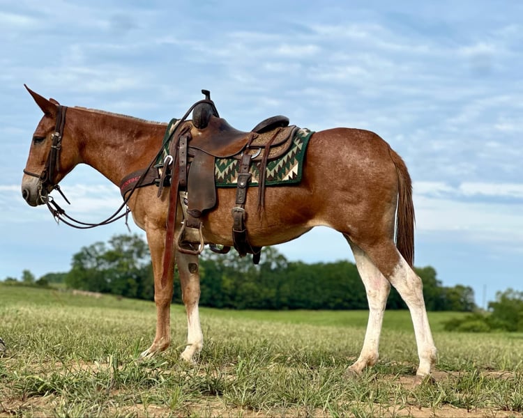ONLINE AUCTION Place your bids at www.PlatinumEquineAuction.com Starting Bid $3500 Auction ends September 1st, 2024 Need a new saddle? Check out White Rock Saddles on our website or Facebook! Luna is a 12 year old, 15 hand Molly mule. She is excellent on the trails with countless miles ridden. If you point her nose, she will go. She crosses logs, slides down banks, goes through water with ease, and crosses bridges. For the more timid riders, she will follow along with the group and not take a misstep. We have had kids trail riding her and several first time riders that she gave confidence to on the trails. She is traffic safe and has been ridden on the roads. She also does well night trail riding. Headlights and flashlights don’t scare her. Luna won’t be the fanciest broke ranch mule, but she is an honest and safe trail riding mule. We trust her with the kids and any inexperienced guest that wants to ride with us. She rides the same in all situations whether on the trail, down the road, or around camp. She loads and trailers well. She stands for saddling and mounting and is good with the clippers. Luna is an all around really nice mule! For more information, please call Sammi Waugh 704-798-5497 Located in Brooksville, KY. ONLINE AUCTION Place your bids at www.PlatinumEquineAuction.com Starting Bid $3500 Auction ends September 1st, 2024 Need a new saddle? Check out White Rock Saddles on our website or Facebook!