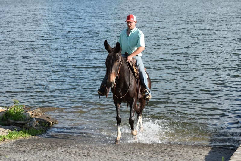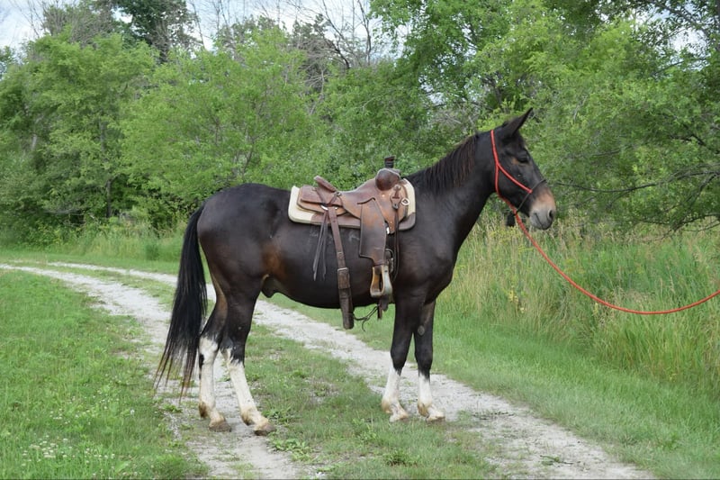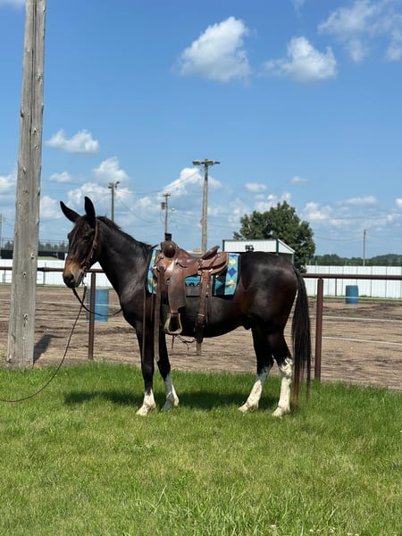 ONLINE AUCTION Place your bids at www.PlatinumEquineAuction.com Starting Bid $3500 Auction ends July 28th, 2024 Need a new saddle? Check out White Rock Saddles on our website or Facebook! Big Mike is a 12 year old 15.2hh John mule. He is gentle, sensible and easy to be around. He is a true trail riding machine that srosses water logs bridges with ease while being sure footed and sound minded. He will walk, trot and lope with ease. Picks up both leads and has an honest one hand neck rein. Big Mike is good around dogs & farm machinery. You can even shoot fireworks from his back. He is an easy keeper & stays sound shod or barefoot. He is very clean in a box stall. Good about his feet and ears. He sells with a current coggins and Ppe. Located in Van Horne, Iowa. For more information please reach out to Dylan 765-553-2527. ONLINE AUCTION Place your bids at www.PlatinumEquineAuction.com Starting Bid $3500 Auction ends July 28th, 2024 Need a new saddle? Check out White Rock Saddles on our website or Facebook!